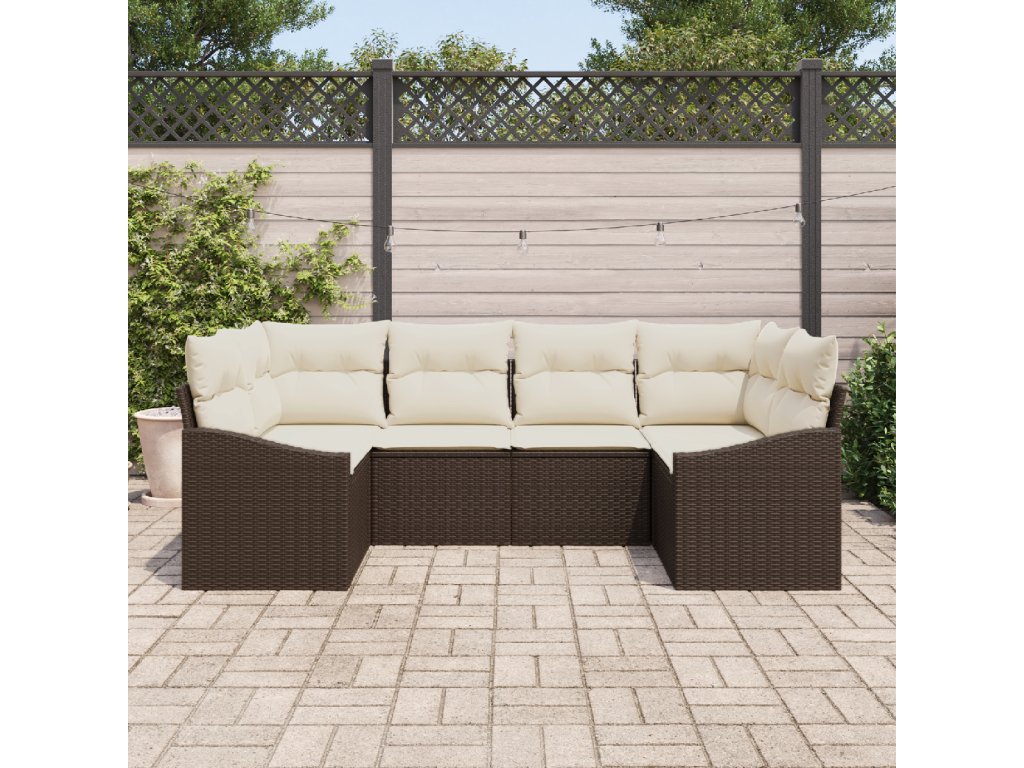 Set pohovek s polštářem 6 pcs Hnědá polyratan