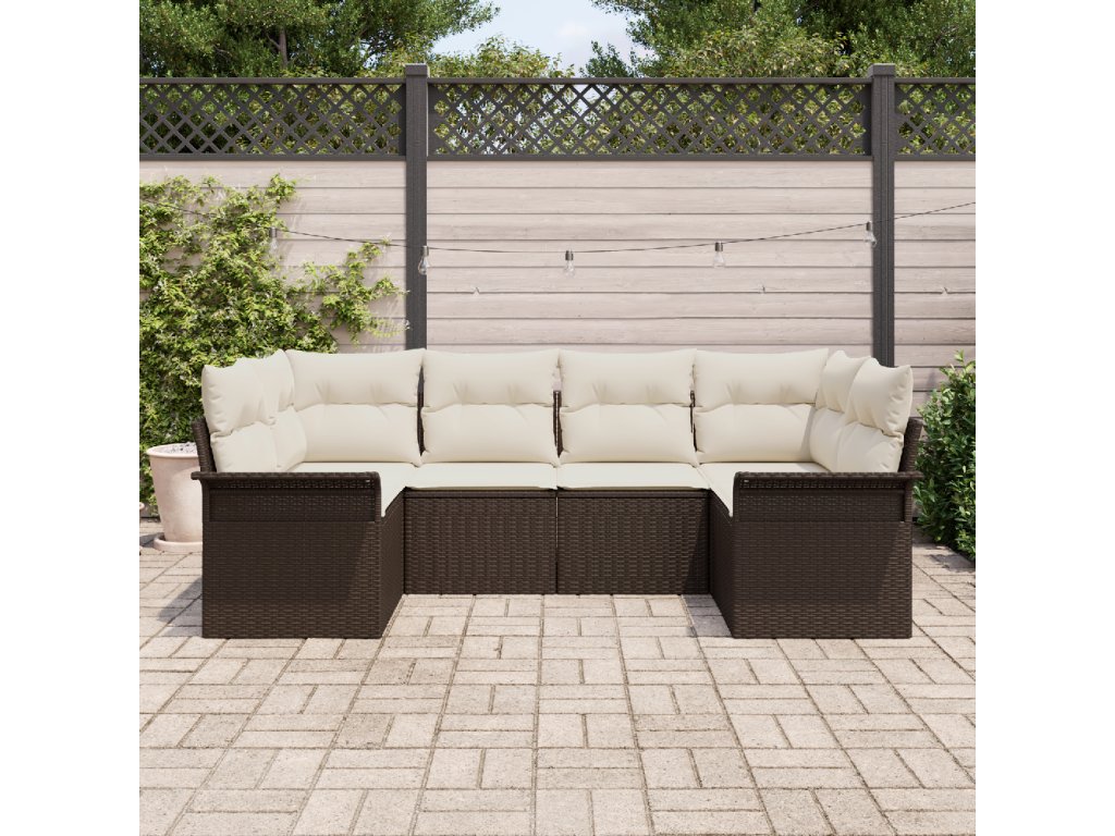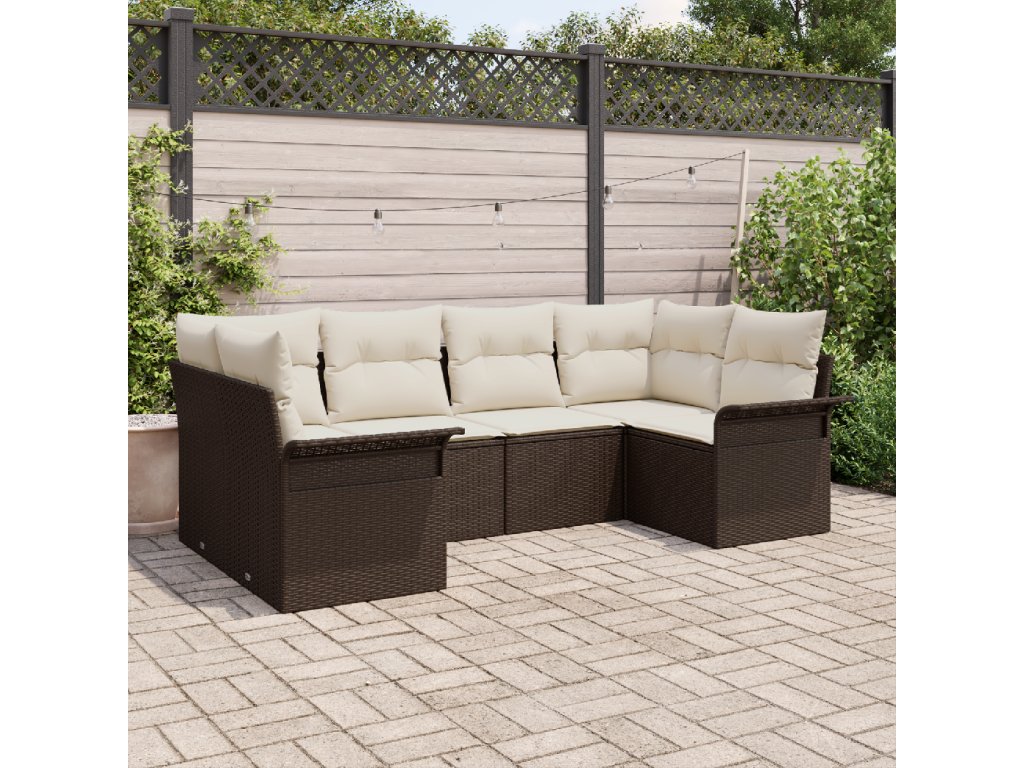 Sada zahradních pohovek s polštářem 6 pcs Hnědá Poly ratan