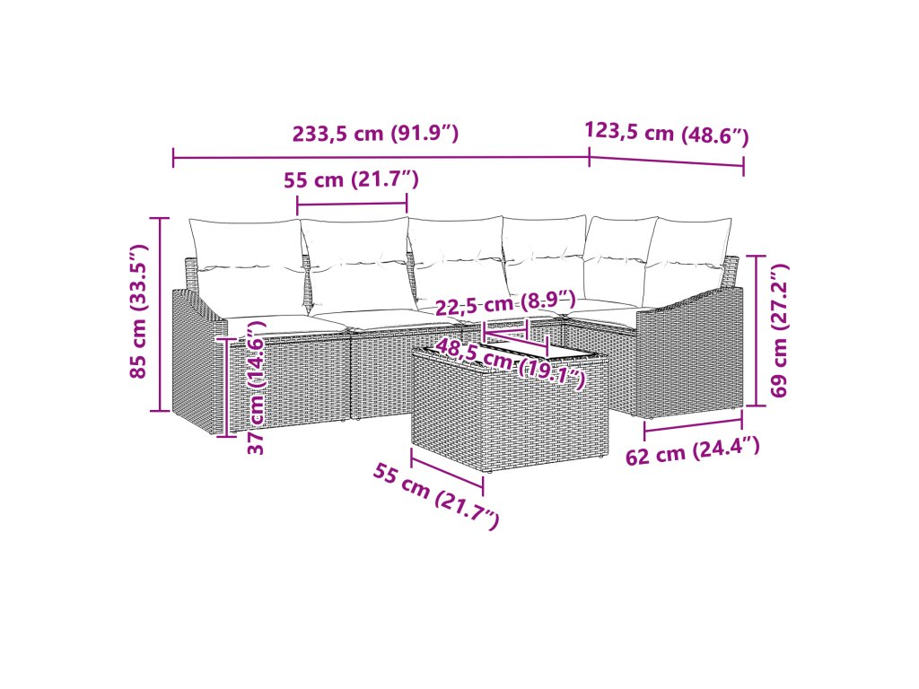 Set pohovek s polštářem 6 pcs Světle šedá polyratan