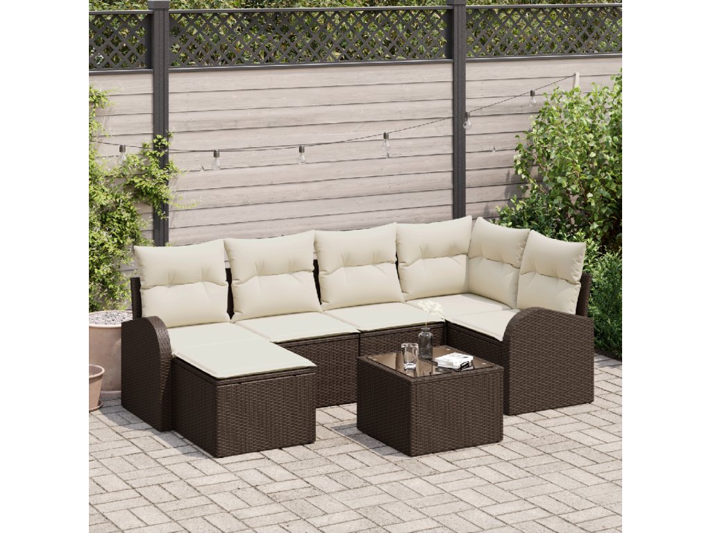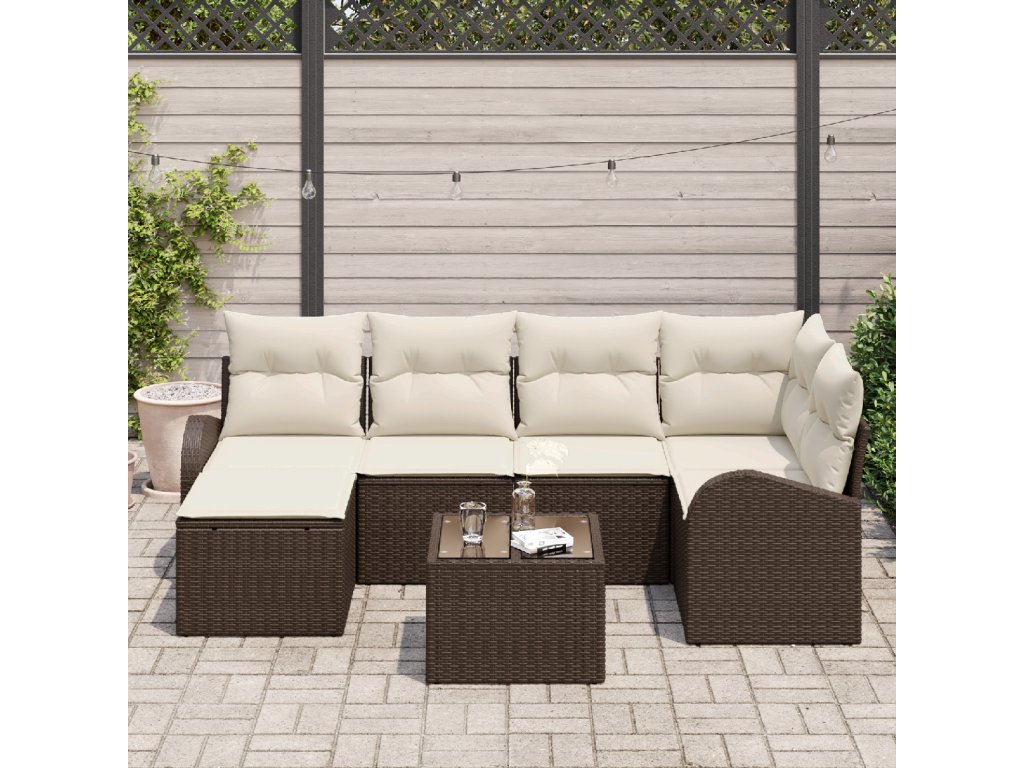 Set pohovek s polštářem 7 pcs Hnědá a bílá polyratan