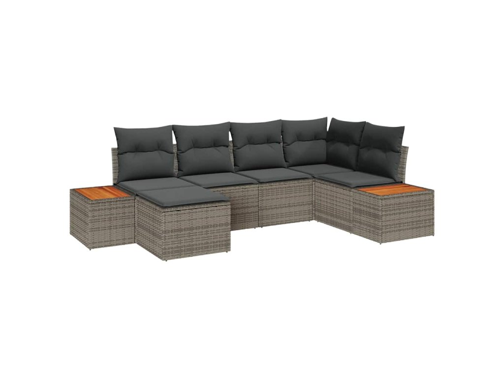 Sada zahradních pohovek s polštářem 6 pcs Šedá Poly Ratan