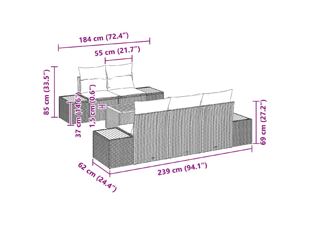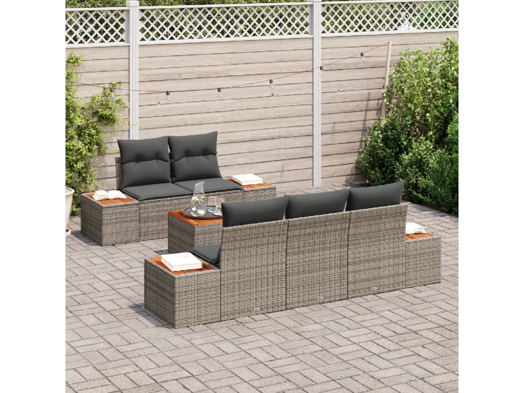 Sada zahradních pohovek s polštářem 6 pcs Šedá Poly ratan