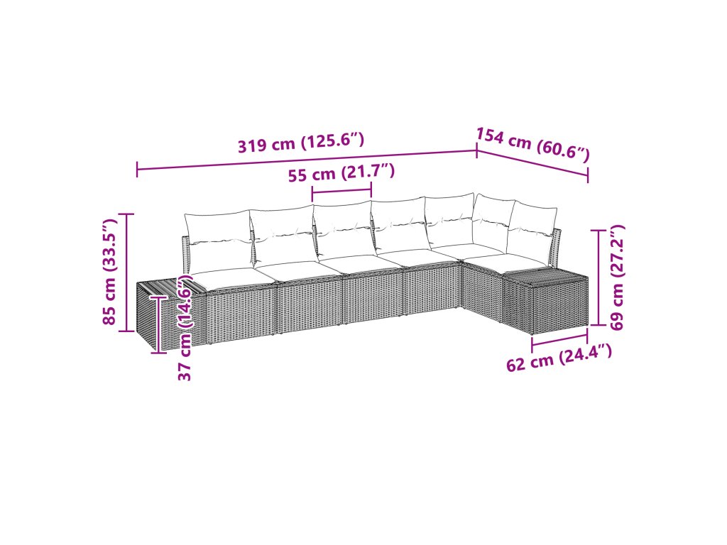 Sada zahradních pohovek s polštářem 6 pcs Světle šedá polyratan