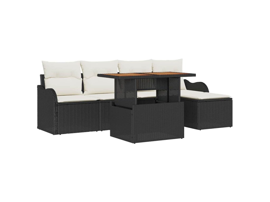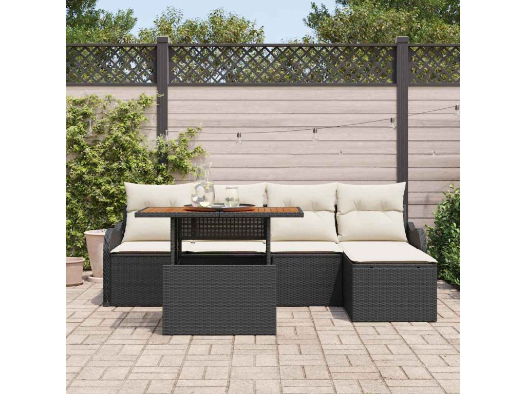 Sada zahradních pohovek s úložištěm 6 pcs Černá Poly ratan