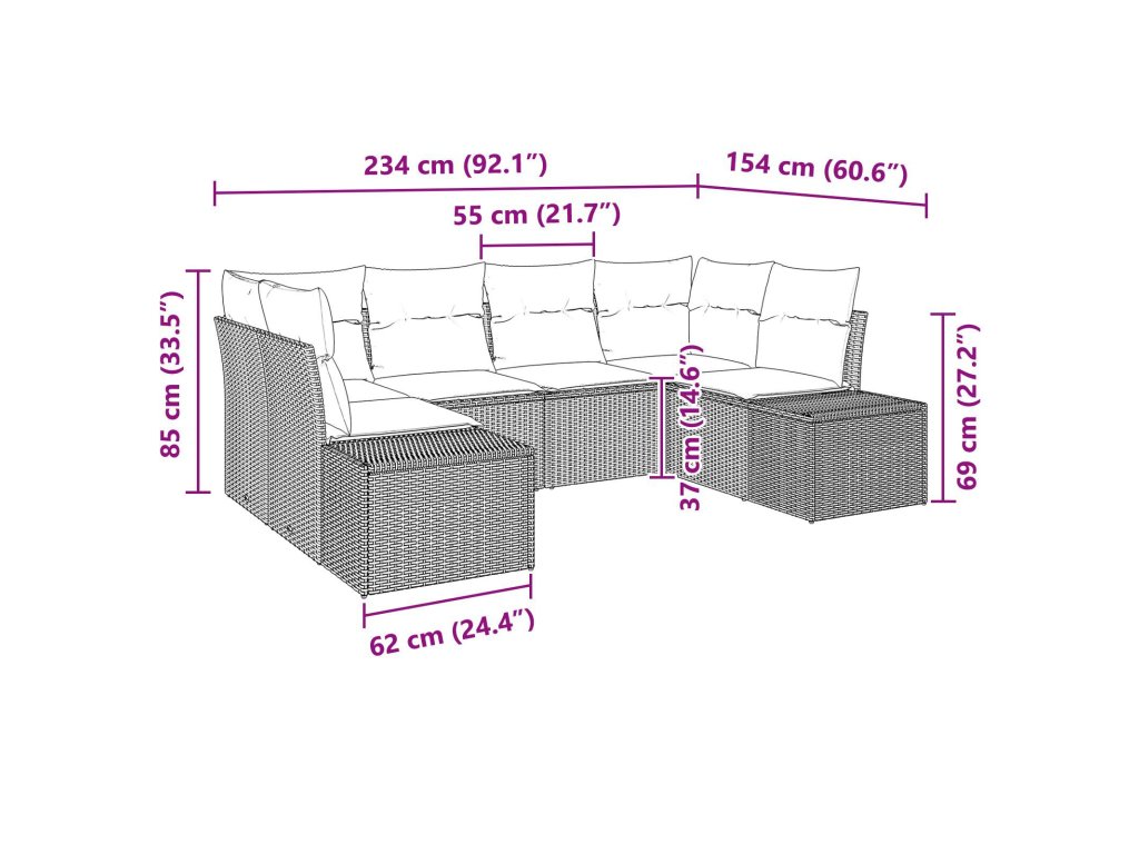 - 2 x boční pohovka: 55 x 55 x 37 cm (ŠxHxV)