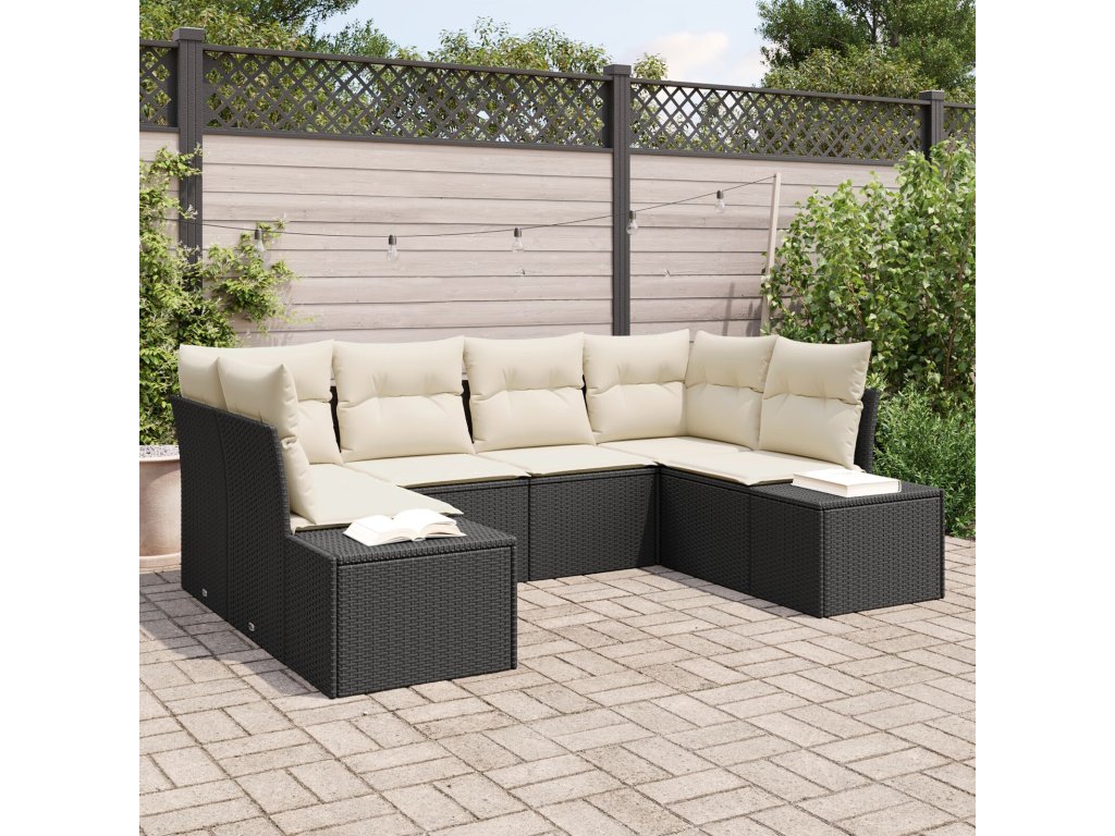 Sada zahradních pohovek s polštářem 6 pcs Černá polyratan