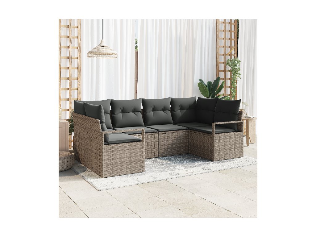 Set pohovek s polštářem 6 pcs Šedá polyratan