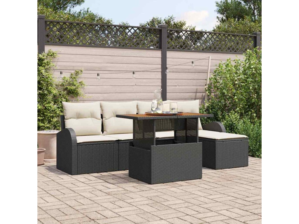 Sada zahradních pohovek s úložištěm 6 pcs Černá Poly ratan