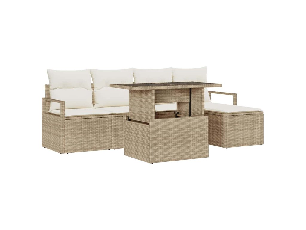 Sada zahradních pohovek s úložištěm 6 pcs Béžová Poly ratan
