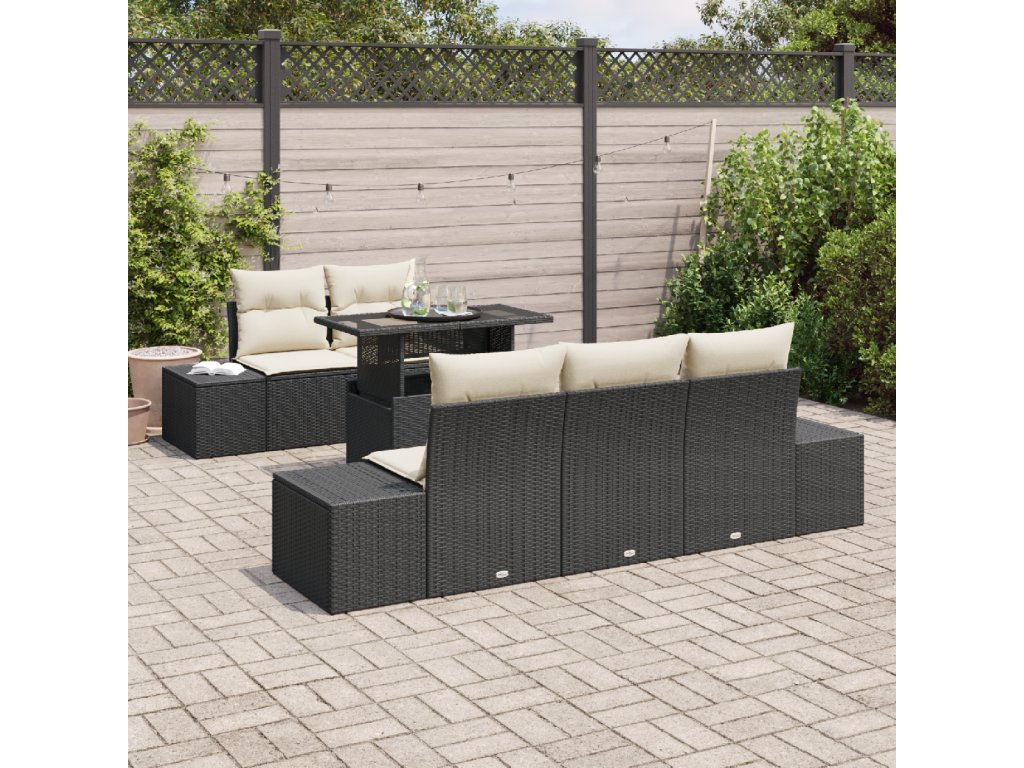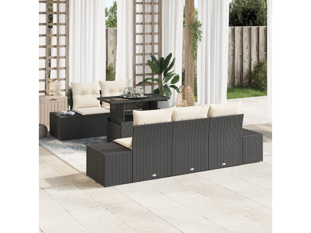 Set pohovek s polštářem 6 pcs Černá a krémová polyratan