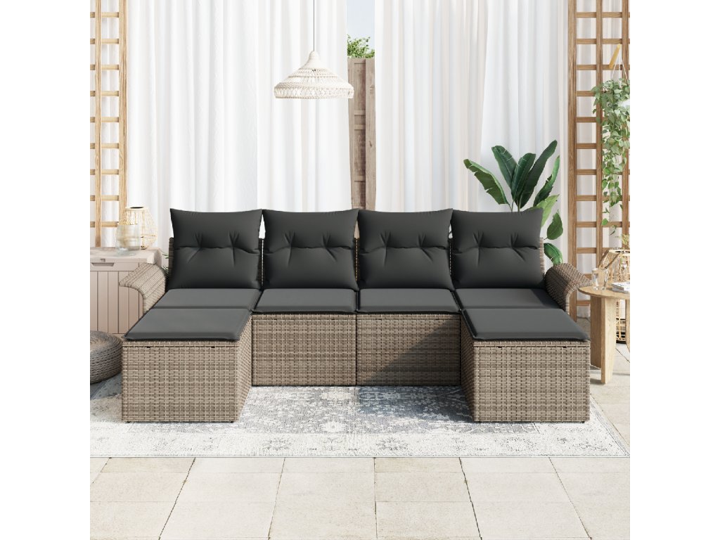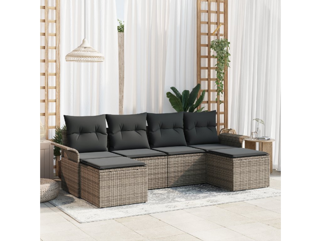 Sada zahradních pohovek s úložištěm 6 pcs Šedá polyratan