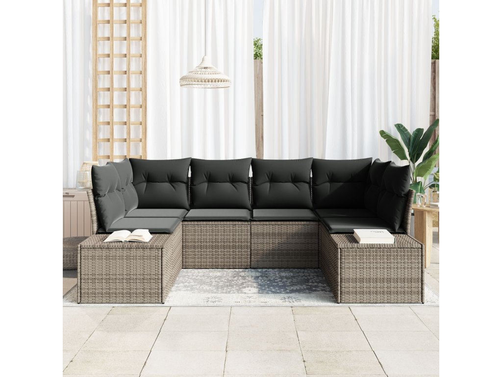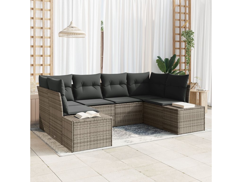 Sada zahradních pohovek s polštářem 6 pcs Šedá polyratan