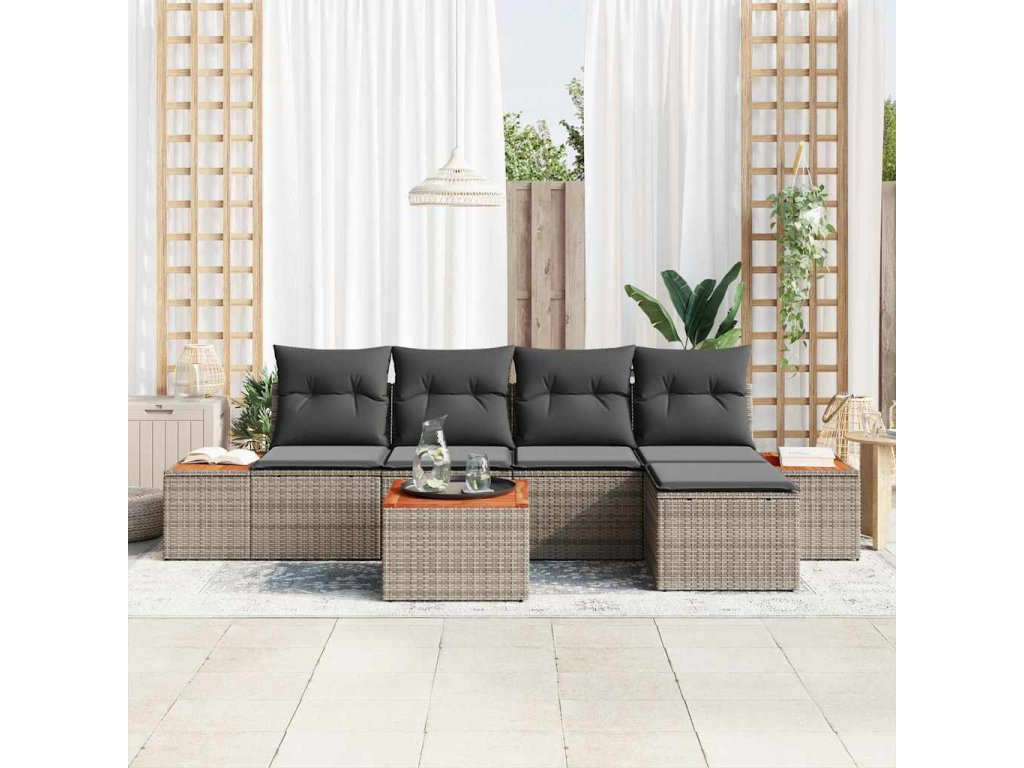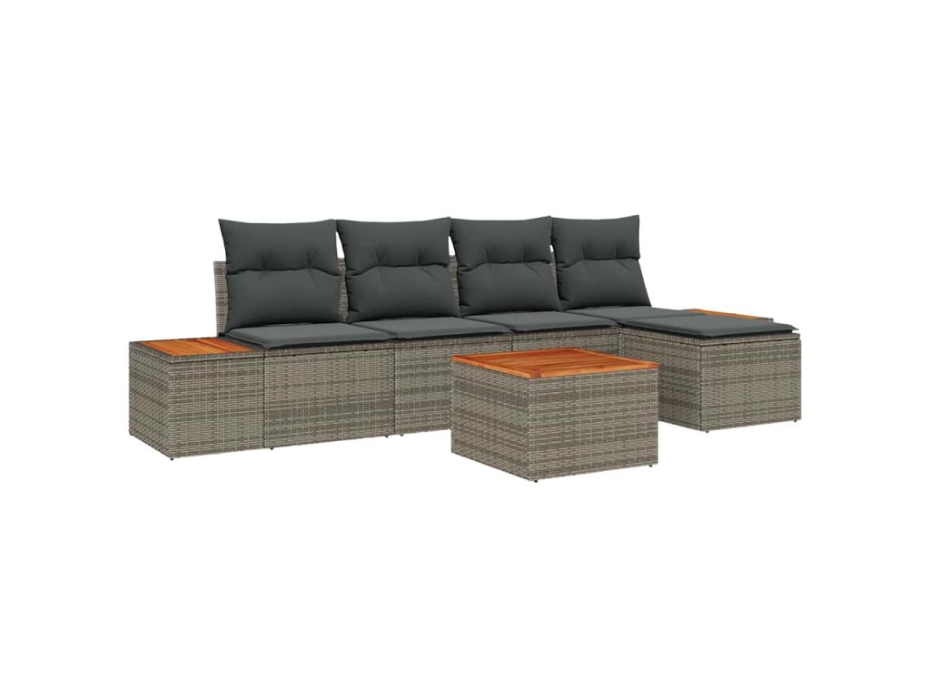 Sada zahradních pohovek s polštářem 6 pcs Šedá Poly Ratan