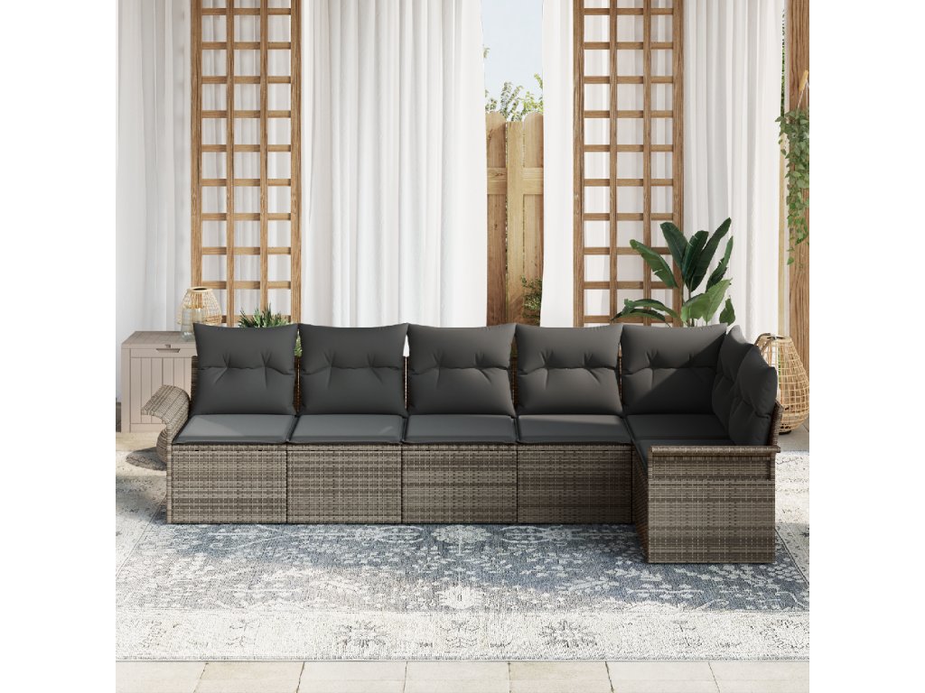 Sada zahradních pohovek s polštářem 6 pcs Šedá Poly ratan