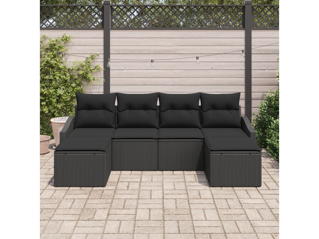 Set pohovek s polštářem 6 pcs Černá polyratan