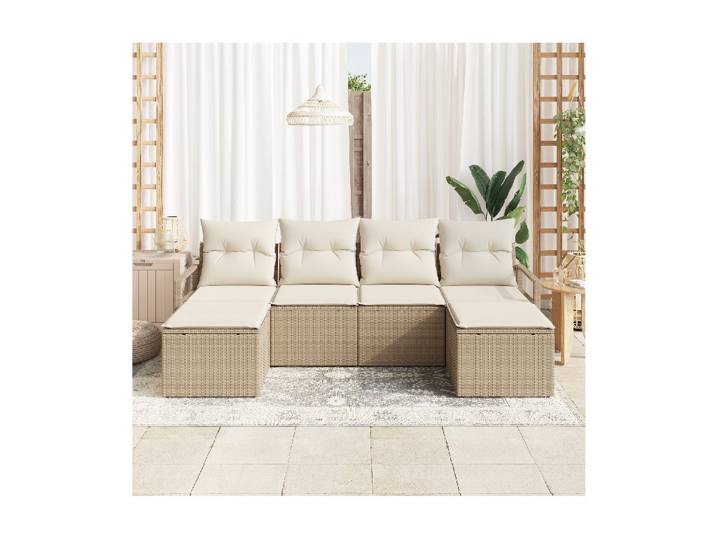 Tkaný poly ratan: Tento sofa set má odolnou konstrukci, která odolává UV záření a zůstává v pěkném stavu i venku. Tkaná textura dodává šmrnc a zajišťuje pohodlí pro jakoukoliv zahradu nebo terasu. Modulární konfigurace: Modulární design sofa setu umožňuje flexibilní uspořádání do jakéhokoli venkovního prostoru. Můžeš přeskládat části, aby ses přizpůsobil jak malým shromážděním, tak větším akcím. Tato volnost ti dává variabilitu a maximalizuje pohodlí. Zpracovaný zadní panel: Všechny části sofa setu mají pečlivě navržený zadní panel, takže vypadá skvěle ze všech úhlů. Tato pozornost k detailům zabezpečuje, že set vypadá super i v rohu zahrady, a dodává kouzlo a spolehlivou akcentaci venkovního dekoru. Pohodlné polštáře: Silné pěnové polštáře nabízejí super pohodlí a promění tvůj venkovní prostor na útulné místo. Polštáře mají odnímatelné potahy se zipem, takže je snadné je vyprat a udržovat pro nerušený odpočinek. Praktické opěrky rukou: Ploché opěrky rukou z poly ratanu doplňují moderní design a nabízejí praktickou podporu pro dlouhé lenošení. Přítomnost opěrek rukou zvyšuje ergonomické výhody, takže je tenhle set skvělý pro relaxaci, povídání nebo čtení venku.- Barva: Béžová