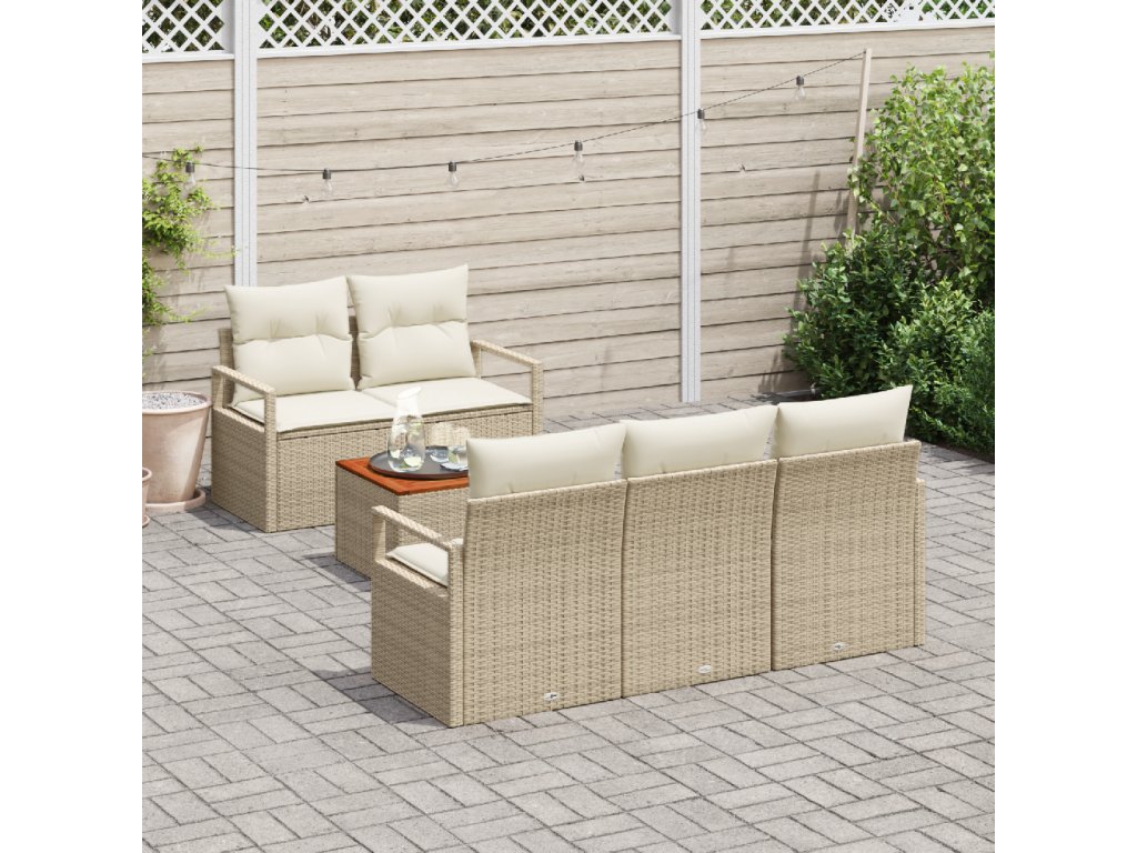 Sada zahradních pohovek s polštářem 6 pcs Béžová Poly ratan