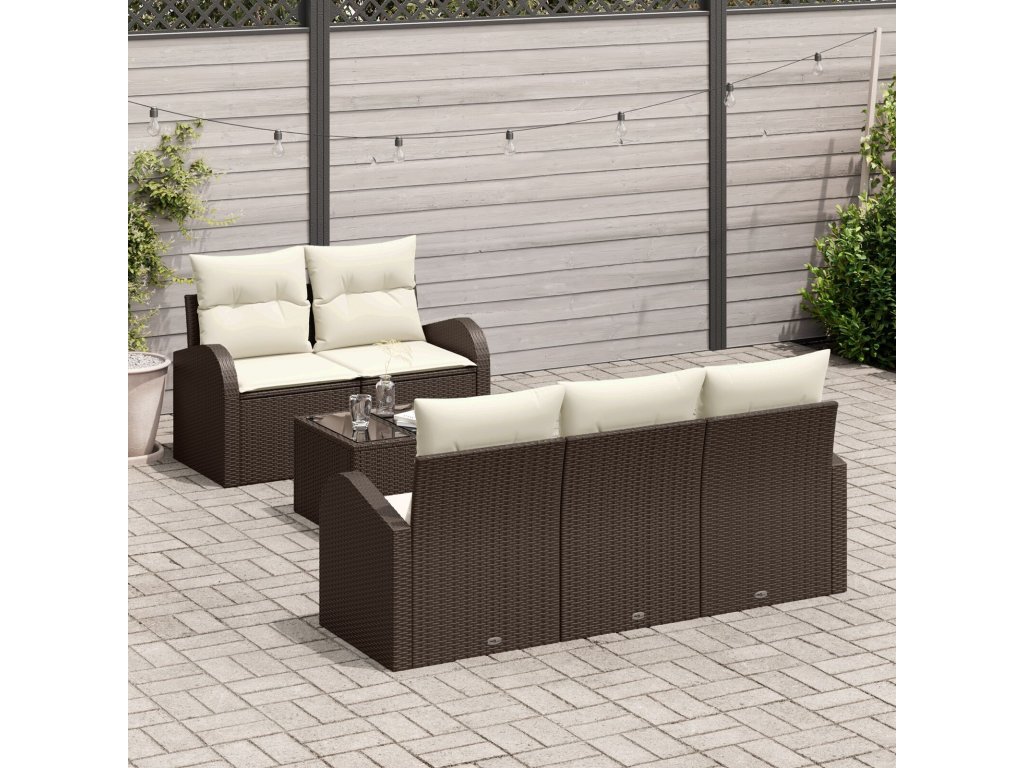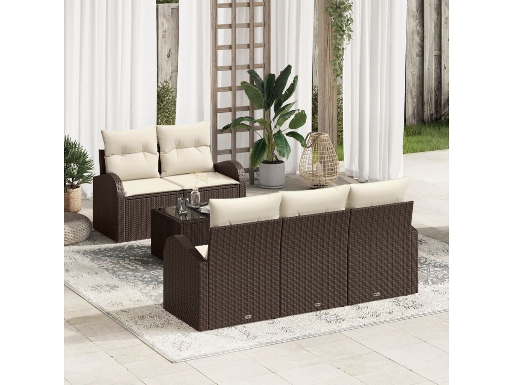 Materiály: Sada je vyrobená z kvalitního poly ratanu, který vypadá skvěle a je šetrný k přírodě díky recyklovatelnosti. Robusní rám z práškově lakované oceli zajišťuje odolnost proti počasí a elegantní vzhled, který skvěle doplní každou zahradu. Tato kombinace zvyšuje trvanlivost a je snadná na údržbu. Zahrnuté komponenty: Sada obsahuje pohodlné sezení, včetně středního sedátka a opěrek na ruce s polštáři z polyesteru, které nabízejí měkké a podpůrné pohodlí. Všechny kusy mají pevné nohy z oceli, což zajišťuje stabilitu. Hlavním kouskem je stolek se skleněným povrchem, který nabízí další prostor na nápoje a dekorace a poskytuje kompletní lounge řešení. Vlastnosti / Funkce / Design: Navrženo pro příjemné venkovní užití, sada se pyšní UV-odolnými materiály, které si udržují svou kvalitu i na slunci, zatímco modulární konstrukce umožňuje snadné přesouvání pro různé uspořádání. Tento přizpůsobivý design vyhovuje různým společenským situacím a dává ti svobodu uspořádat prostor podle svých představ. Doporučené použití: Ideální pro zahrady a terasy, sada skvěle zapadne do letních venkovních aktivit, jako jsou neformální setkání, klidné osamění nebo živé večírky. Ať už je umístěná u bazénu, mezi bujnou vegetací nebo pod zastřešenou terasou, vytváří příjemnou atmosféru k odpočinku a užívání. Údržba a péče: Udržování soupravy v perfektním stavu je snadné – stačí ji jednou za čas otřít vlhkým hadříkem. Doporučuje se mít ochranný kryt během špatného počasí, aby se zabránilo opotřebování.- Barva: Hnědá