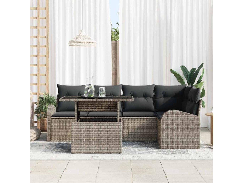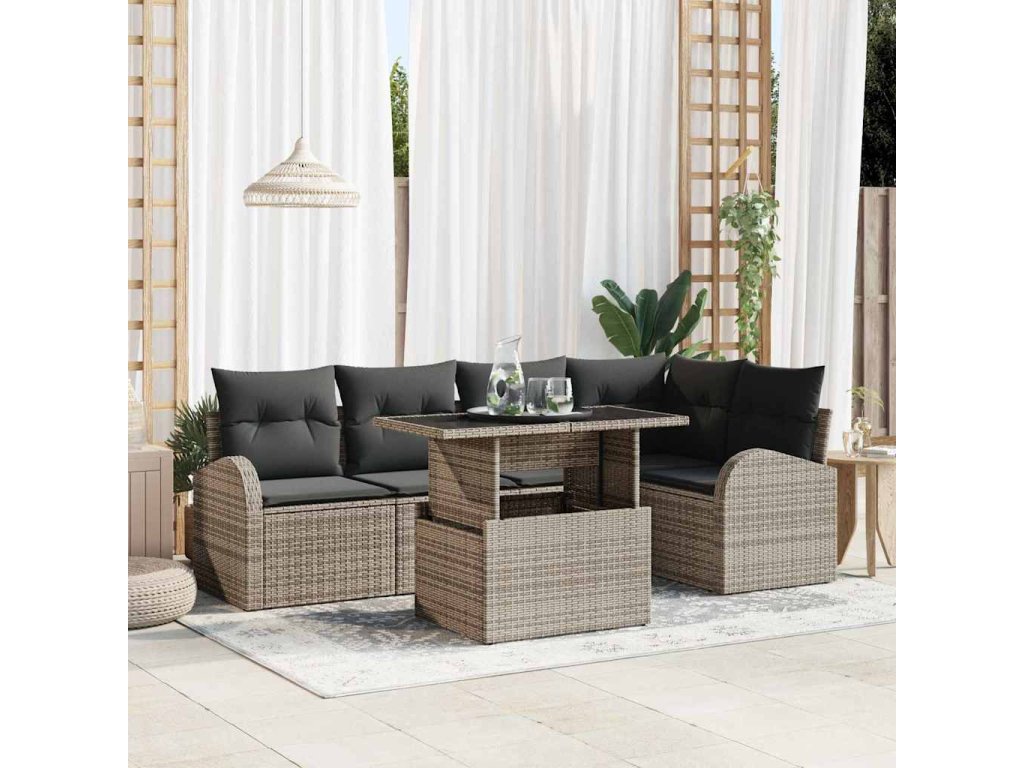 Sada zahradních pohovek s polštářem 6 pcs Šedá Poly ratan