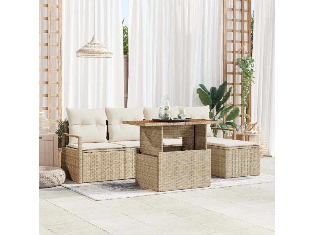 Materiály: Sedací set je z prvotřídního polyratanu, oceli a masivního akáciového dřeva, takže vypadá skvěle a vydrží. Tkaný polyratan dodává umělecký šmrnc, zatímco masivní akáciové dřevo přináší přírodní krásu. Tato kombinace zajišťuje, že zvládne venkovní počasí, udrží si dobrý vzhled i na slunci a za deště. Součásti: Dodává se se dvěma bočními sedačkami a centrálními místy, každé s užitečným úložným prostorem pro zahradní pomůcky. Podnožka a zahradní stůl zvyšují funkčnost, vytvářejí flexibilní uspořádání pro vaše venkovní potřeby. Funkce / Design: Modulární design je flexibilní, dovoluje vám skládat a přizpůsobovat kusy pro jakoukoli příležitost. Nastavitelné nohy zajišťují stabilitu na nerovném terénu, zatímco čtvercové opěrky a pohodlné sezení dodávají moderní a užitečný prvek, pomáhají vytvářet uvolněnou venkovní atmosféru. Doporučené použití: Ideální na zahradu a terasu, přetváří venkovní prostory na odpočinkový ráj. Tento set je všestranný na jaro a léto, skvělý pro setkání, poklidná odpoledne nebo neplánované oslavy. Péče a údržba: Udržujte ho v dobrém stavu použitím voděodolného potahu, když ho nepoužíváte. Rychle uklízejte suchým hadříkem, udržíte jeho barvy jasné, jen se vyhněte agresivním chemikáliím, aby zůstal v top stavu. S minimální údržbou nabízí trvalou krásu a funkčnost.- Barva: Béžová a krémová