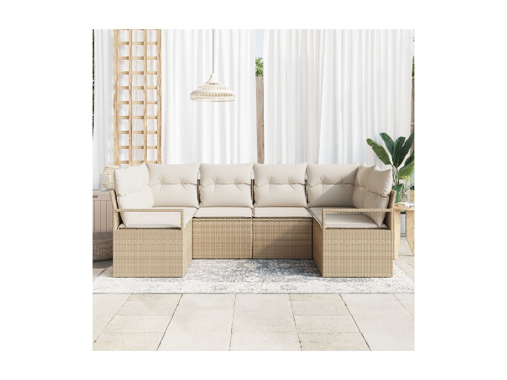 Set pohovek s polštářem 6 pcs Béžová polyratan