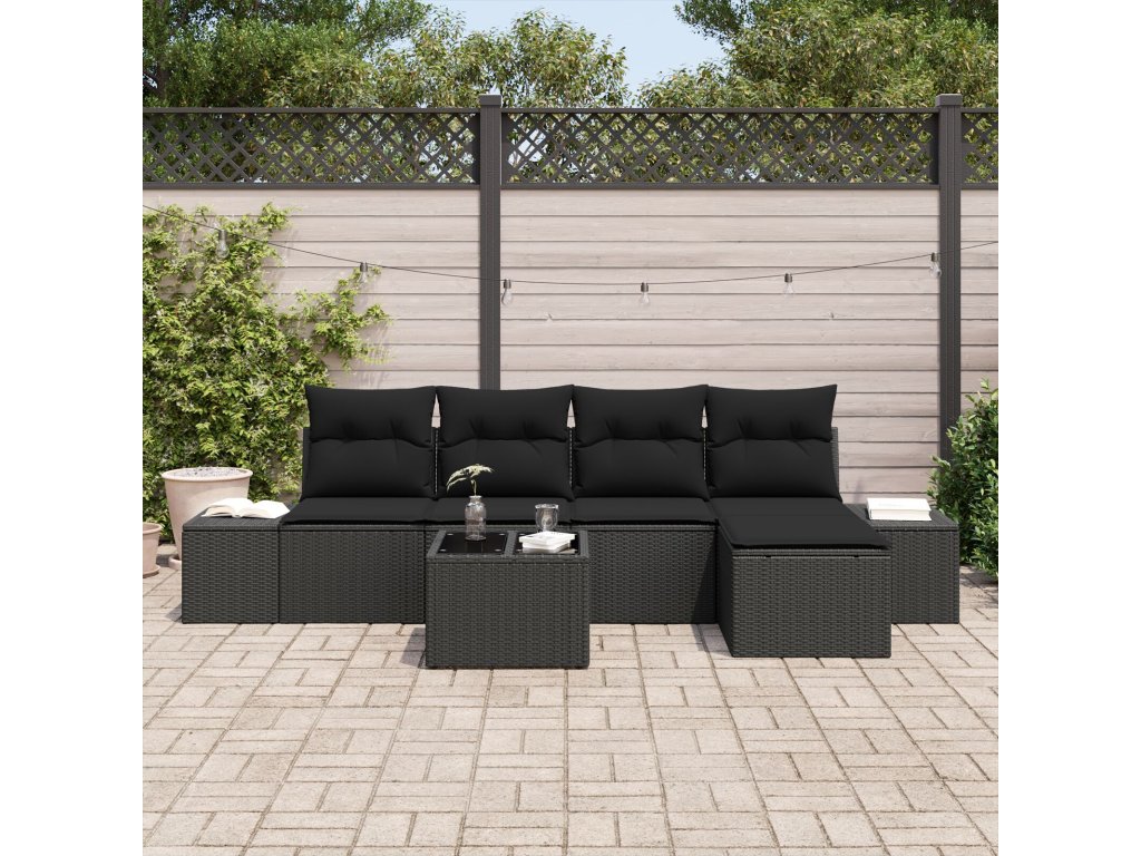 Sada zahradních pohovek s polštářem 6 pcs Černá polyratan