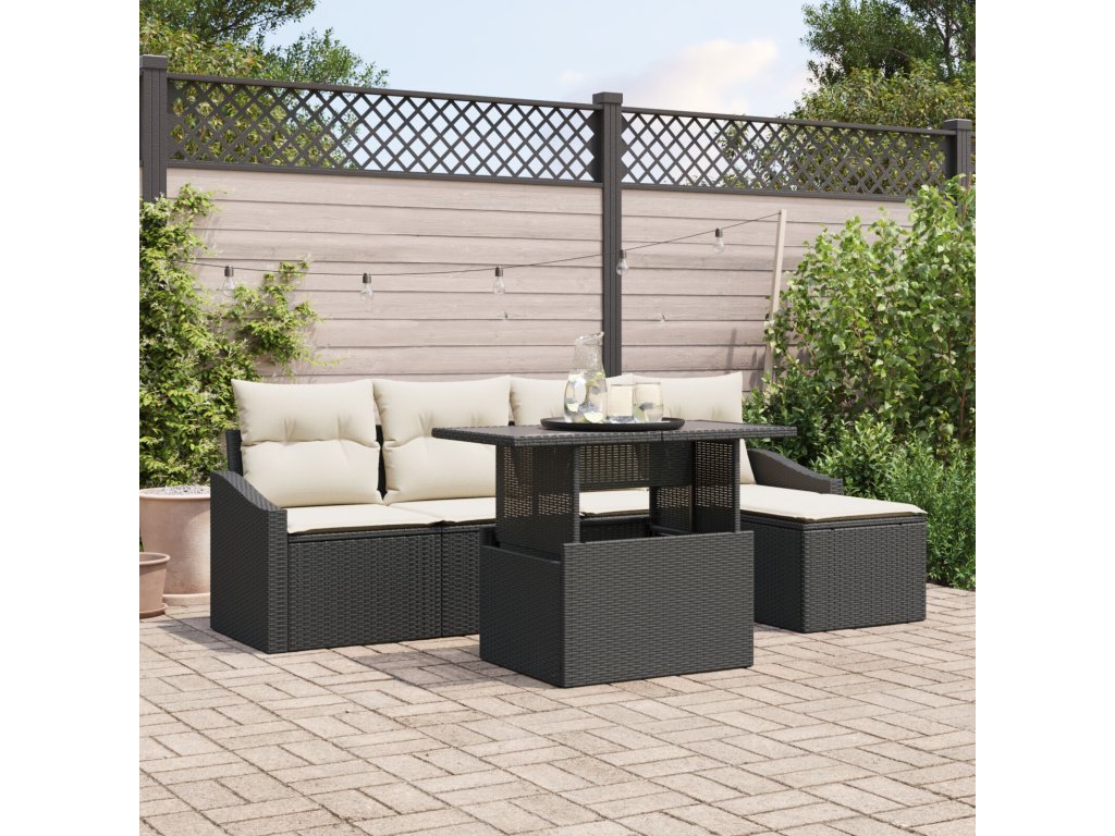 Sada zahradních pohovek s polštářem 6 pcs Černá a krémová