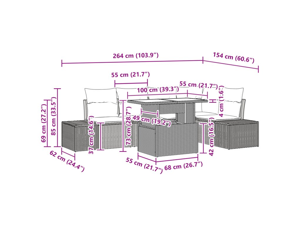 Tento modulární zahradní pohovkový set je pravým symbolem venkovního luxusu, který spojuje skvělý styl, pohodlí a praktičnost. Určený pro moderní zahradní nadšence, tento set se skvěle hodí do všech venkovních prostor a dodává šmrnc díky svému elegantnímu designu. Je vyroben s práškově lakovaným ocelovým rámem, který je potažený odolným poly ratanem, a má úžasný černý finiš, který doplní každou venkovní výzdobu. Je ideální na jarní a letní setkání a zve hosty k relaxaci v příjemném pohodlí.