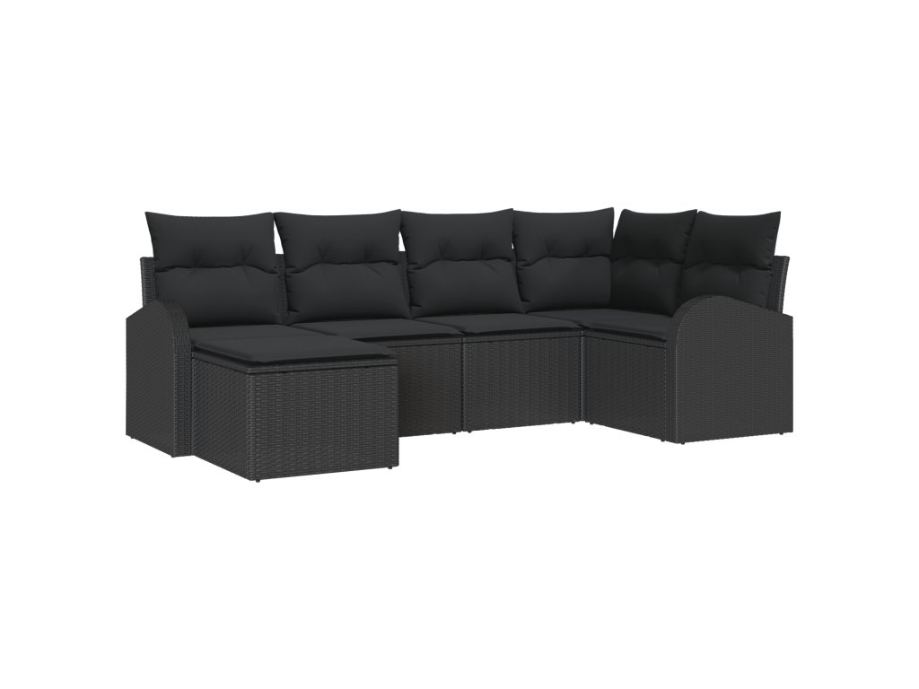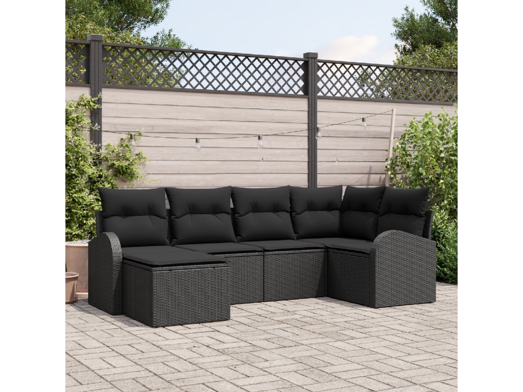 Set pohovek s polštářem s úložištěm 6 pcs Černá polyratan