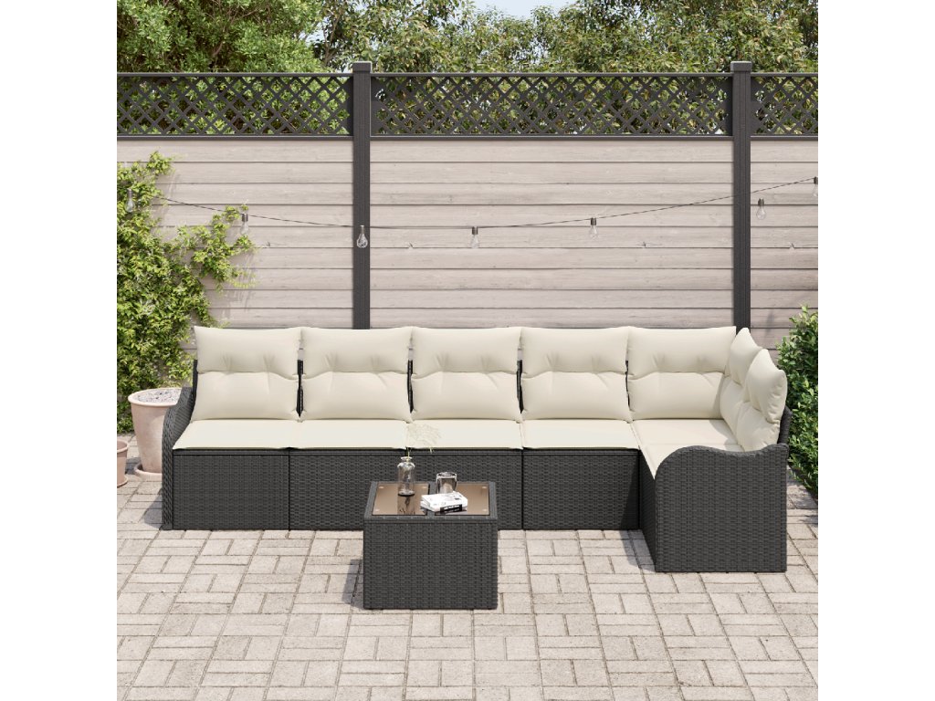 Sada zahradních pohovek s polštářem 7 pcs Hnědá Poly ratan
