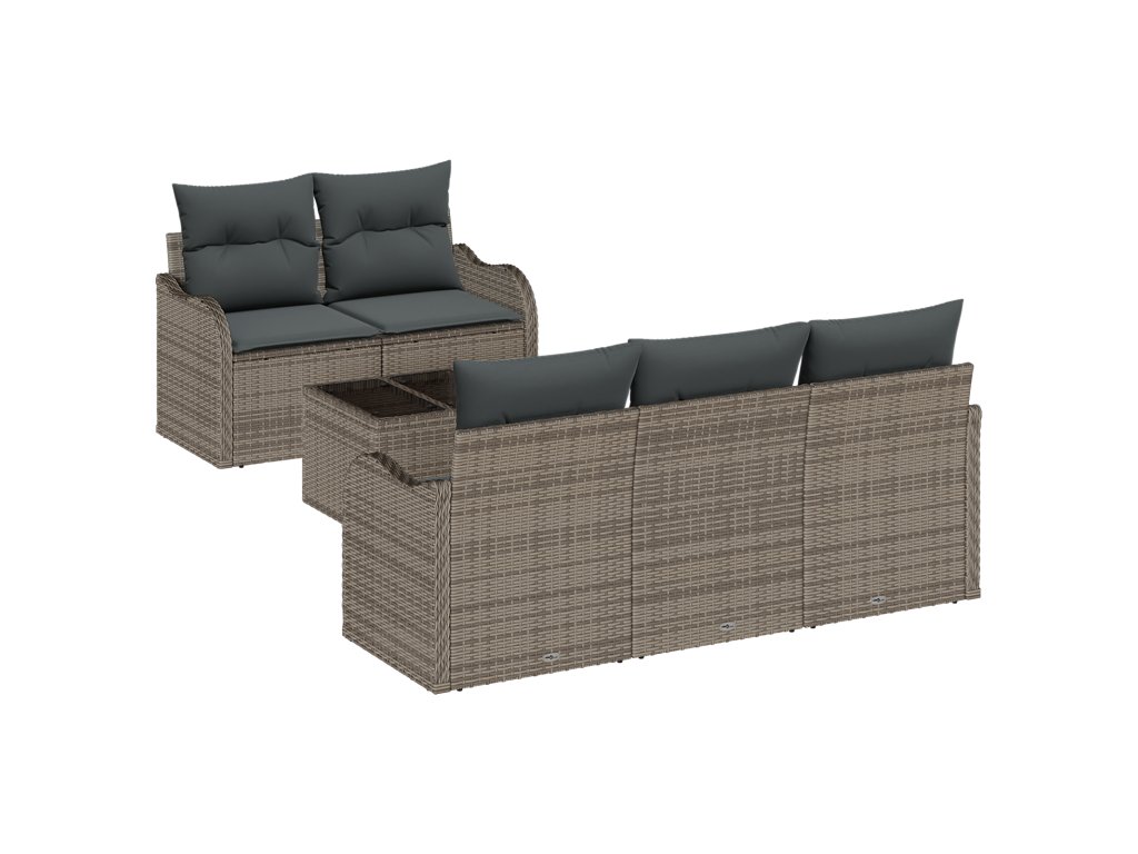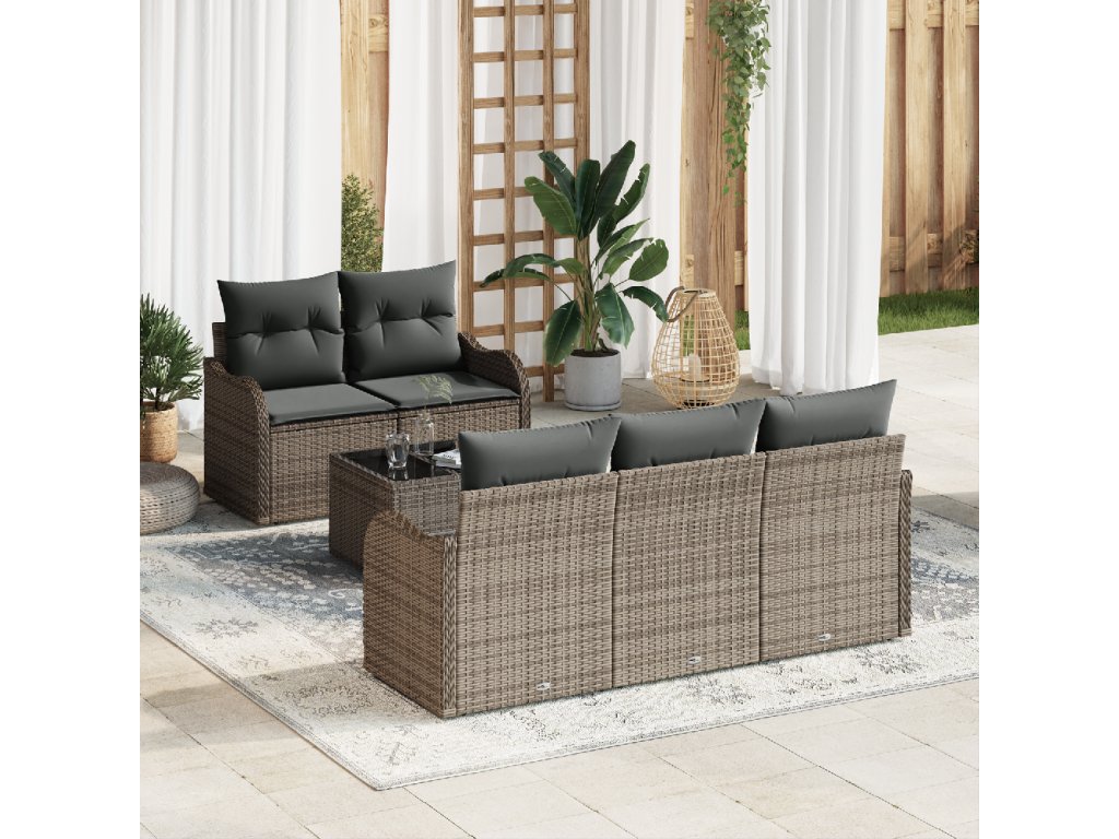 Materiály: Tento set je převážně z poly ratanu, což je materiál odolný a vizuálně hezký. Je pohodlný, pevný a odolný proti povětrnostním vlivům. Polyesterové vlákno zajistí příjemný pocit a chrání před vlhkostí a UV zářením. Ocelové nohy zajišťují stabilitu a dlouhou životnost. Zahrnuté komponenty: Souprava obsahuje střední sedadlo, čtyři pohovky s opěrkami a robustní stůl. Skleněná deska stolu přidává elegantní a trvanlivý povrch pro nápoje a dekorace. Křivky a opěrky z poly ratanu zvyšují pohodlí pro dlouhé posezení. Ocelové nohy garantují pevnou oporu na jakémkoliv povrchu. Funkce/design: Díky modulárnímu designu můžete přizpůsobit uspořádání sedadel podle vašich potřeb. Lehká konstrukce umožňuje snadnou manipulaci a přetváření, takže se snadno přizpůsobí změnám v zahradě. UV-odolné materiály chrání před slunečním zářením, což zajišťuje dlouhou životnost. Doporučeno pro: Ideální pro slunné terasy, zahrady nebo venkovní kouty, umožňuje užít si pohodlné posezení venku. Díky modulárnímu designu podporuje různá uspořádání, ať už jde o malé sezení nebo velké akce. Ať už plánujete letní brunch nebo si chcete jen přečíst knihu, tento set se stane centrem vaší venkovní oázy. Péče a údržba: Udržujte soupravu v dobrém stavu jednoduše otřením vlhkým hadříkem a používáním ochranných obalů, když se nepoužívá. Pro delší životnost uchovávejte polštáře v suchu. Tyto jednoduché úkony zajistí, že váš set zůstane atraktivní s minimálním úsilím.- Barva: Šedá