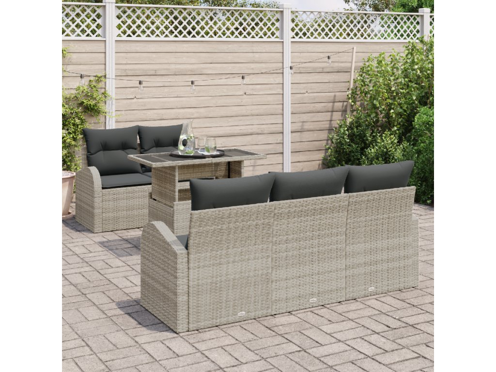Sada zahradních pohovek s polštářem 6 pcs Světle šedá polyratan