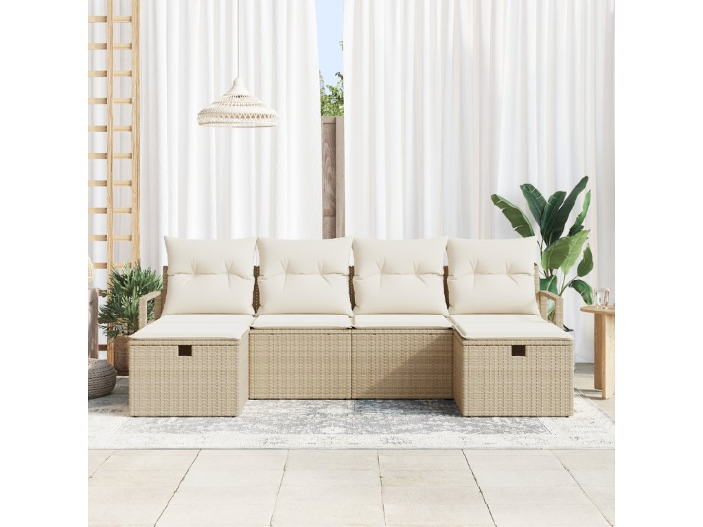 Set pohovek s polštářem 6 pcs Béžová a krémová polyratan