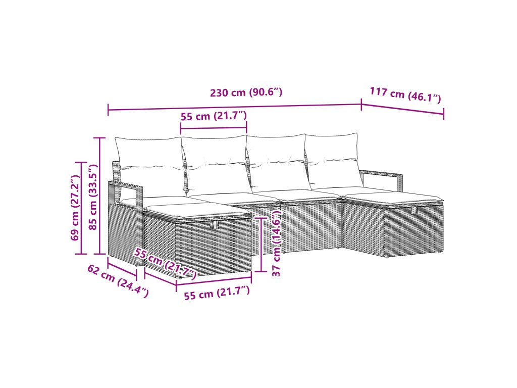 Tahle zahradní souprava kombinuje moderní styl a praktičnost, aby vylepšila každou terasu nebo zahradu. Její jednoduchý a elegantní design z poly ratanu je odolný a snadno se udržuje. Nabízí pohodlné sezení a přizpůsobí se různým příležitostem, od rodinných setkání po relaxaci na sluníčku nebo klidné večery pod hvězdami.