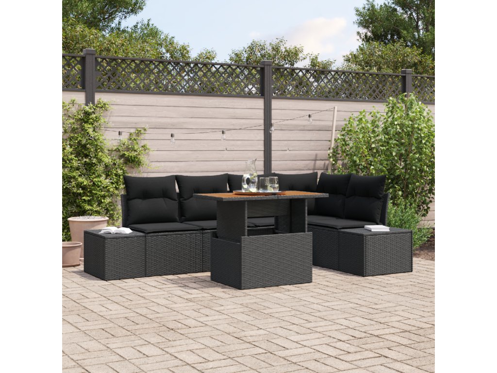 Zahradní jídelní souprava s polštářem 6 pcs Černá a hnědá