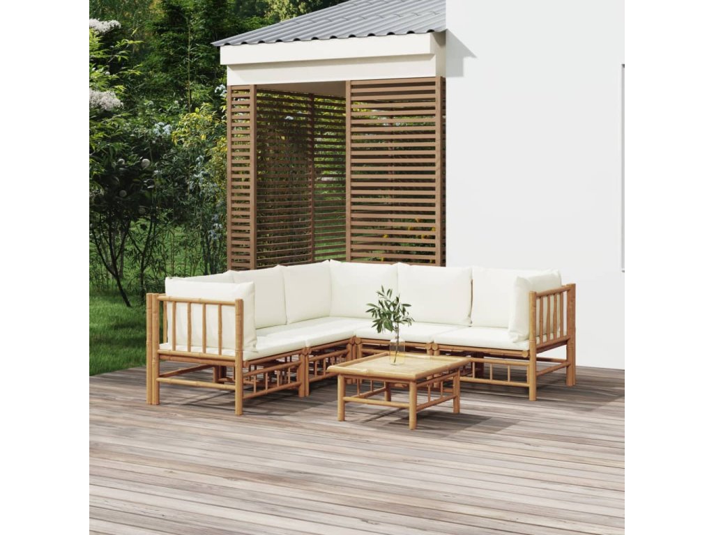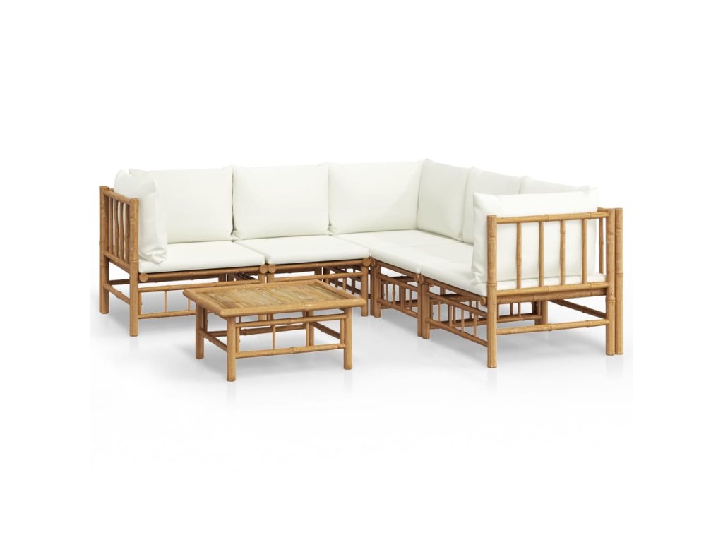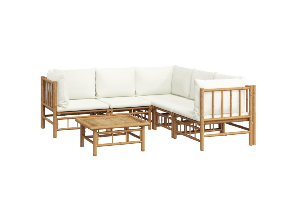 6dílná zahradní sedací souprava krémově bílé podušky bambus
