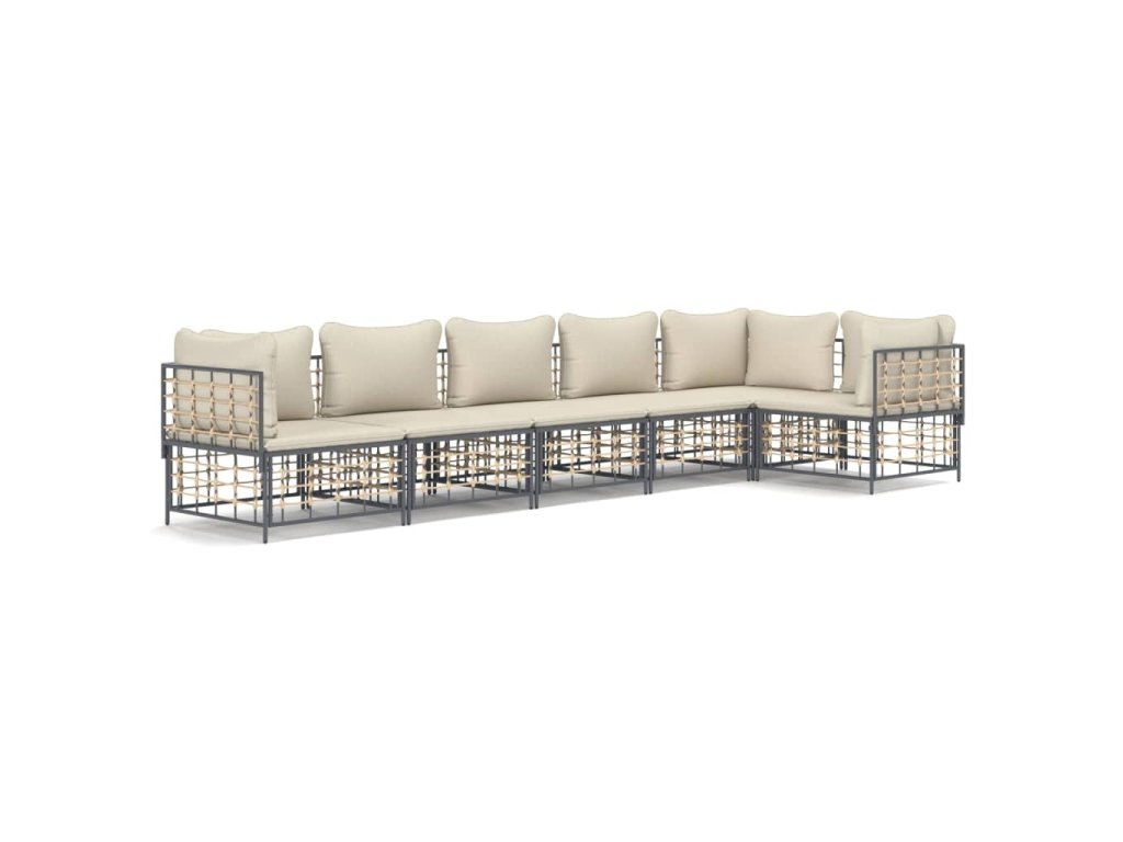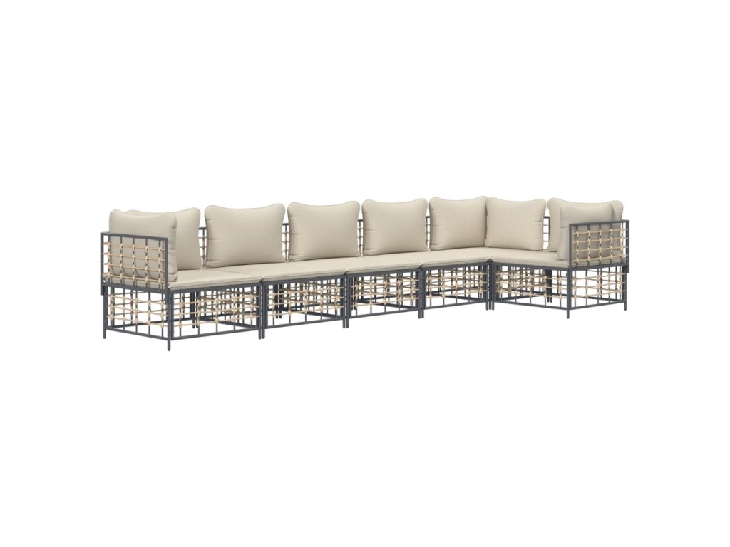 6dílná zahradní sedací souprava s poduškami antracit polyratan