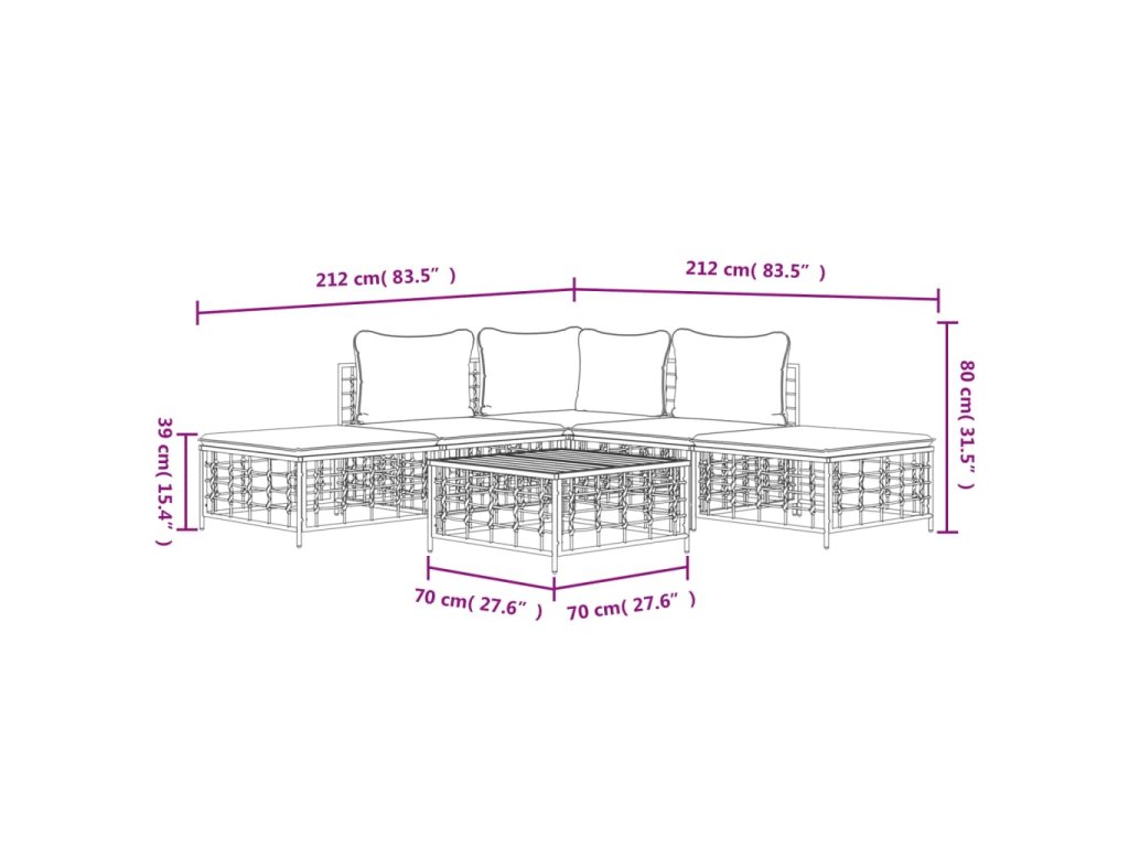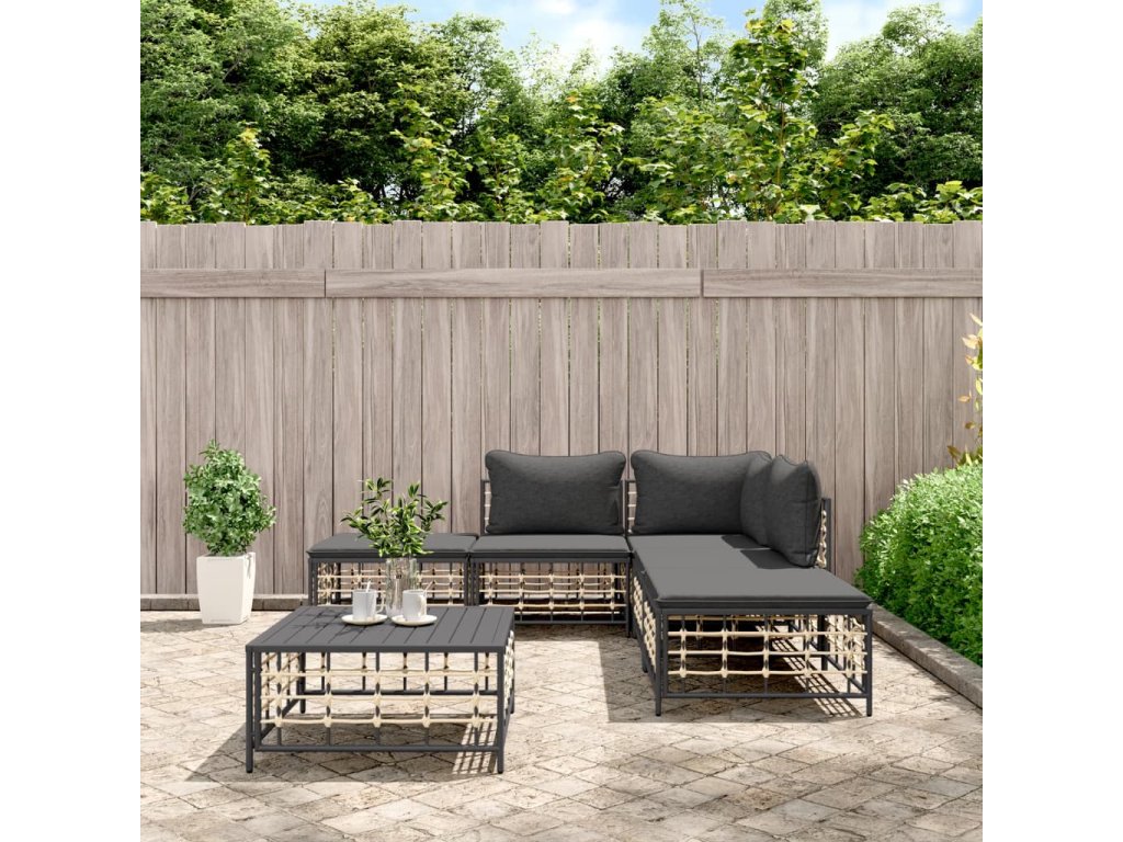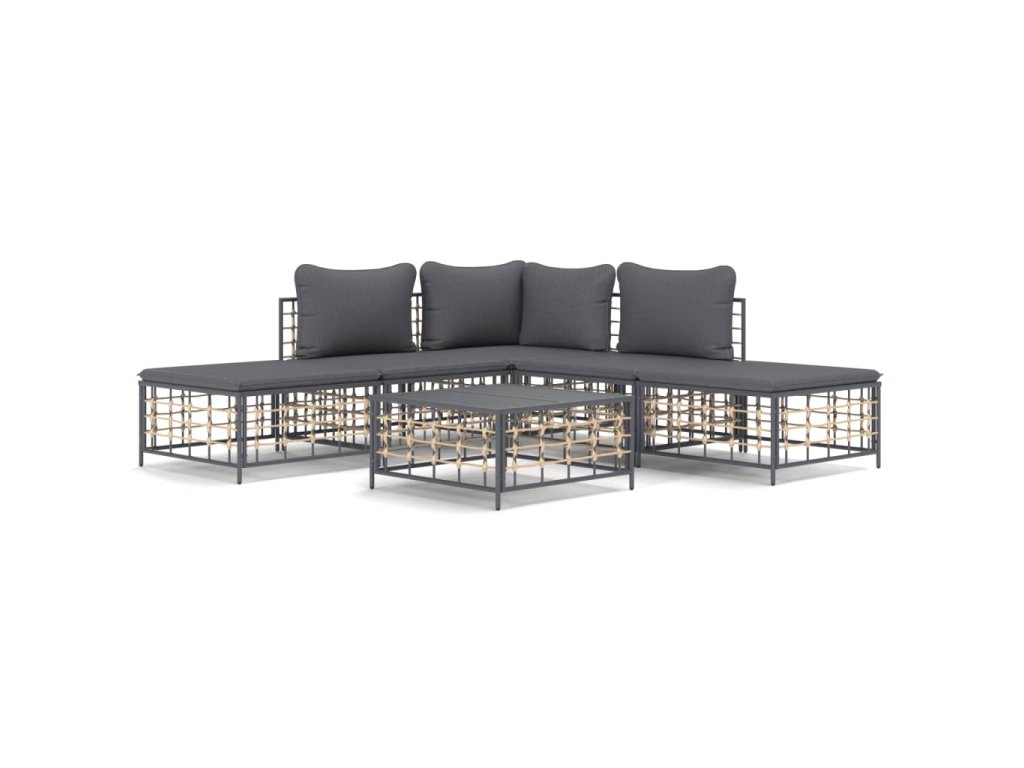 6dílná zahradní sedací souprava s poduškami antracit polyratan