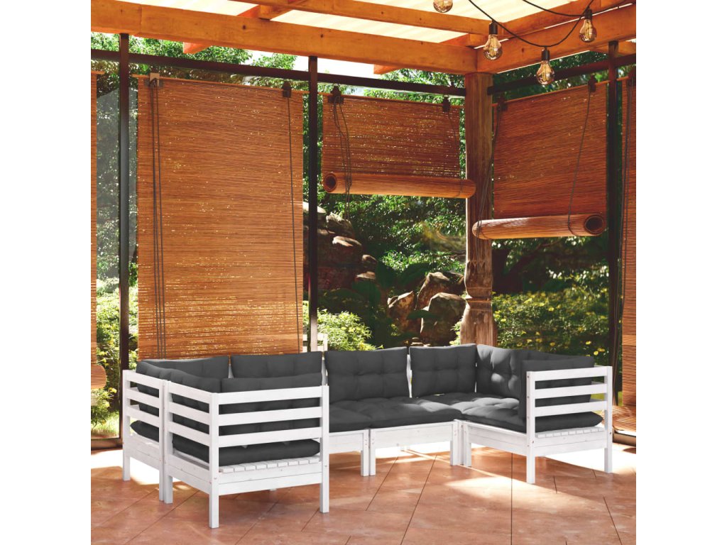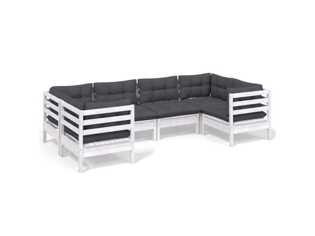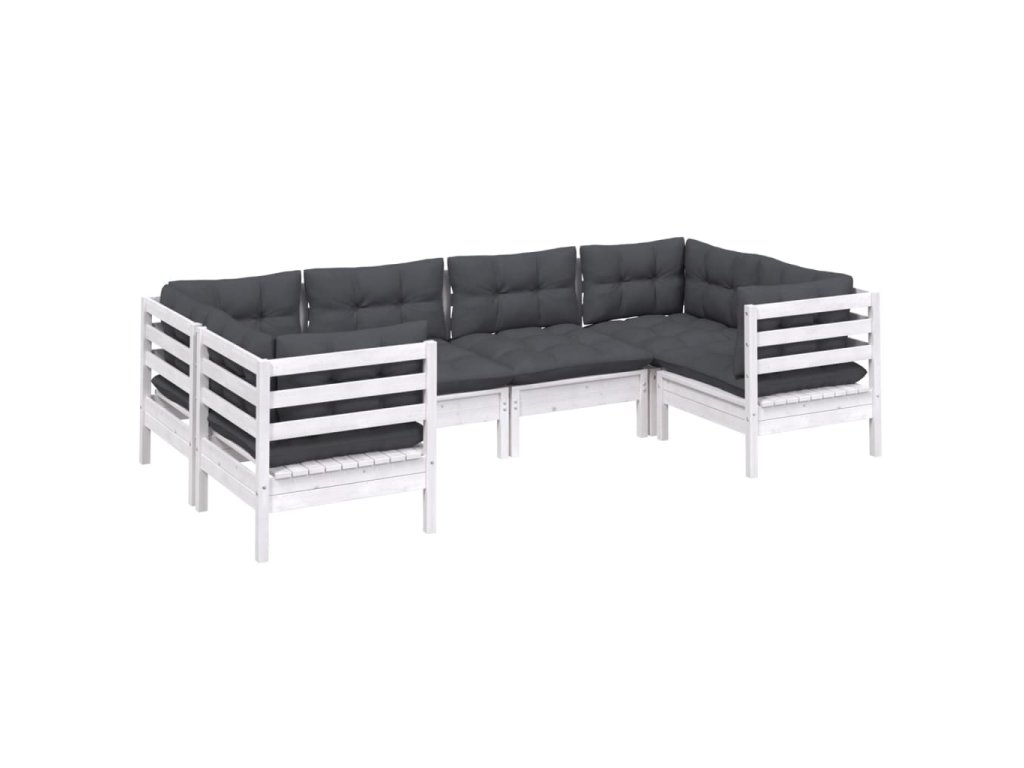 6dílná zahradní sedací souprava s poduškami bílá borovice