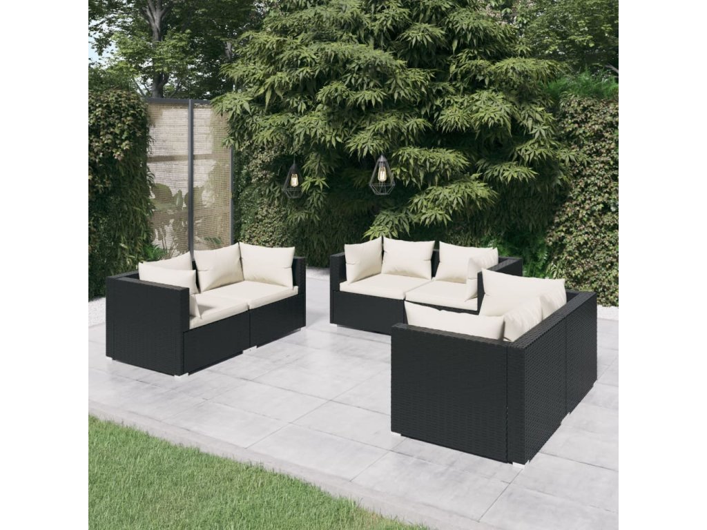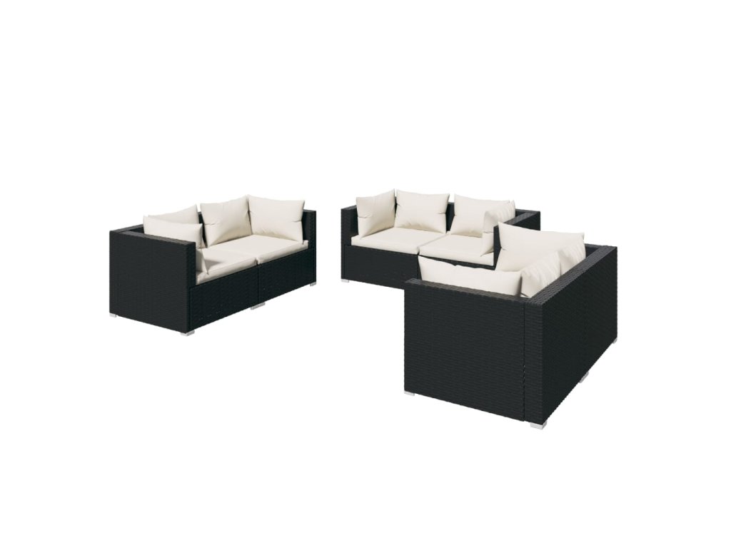 6dílná zahradní sedací souprava s poduškami polyratan černá