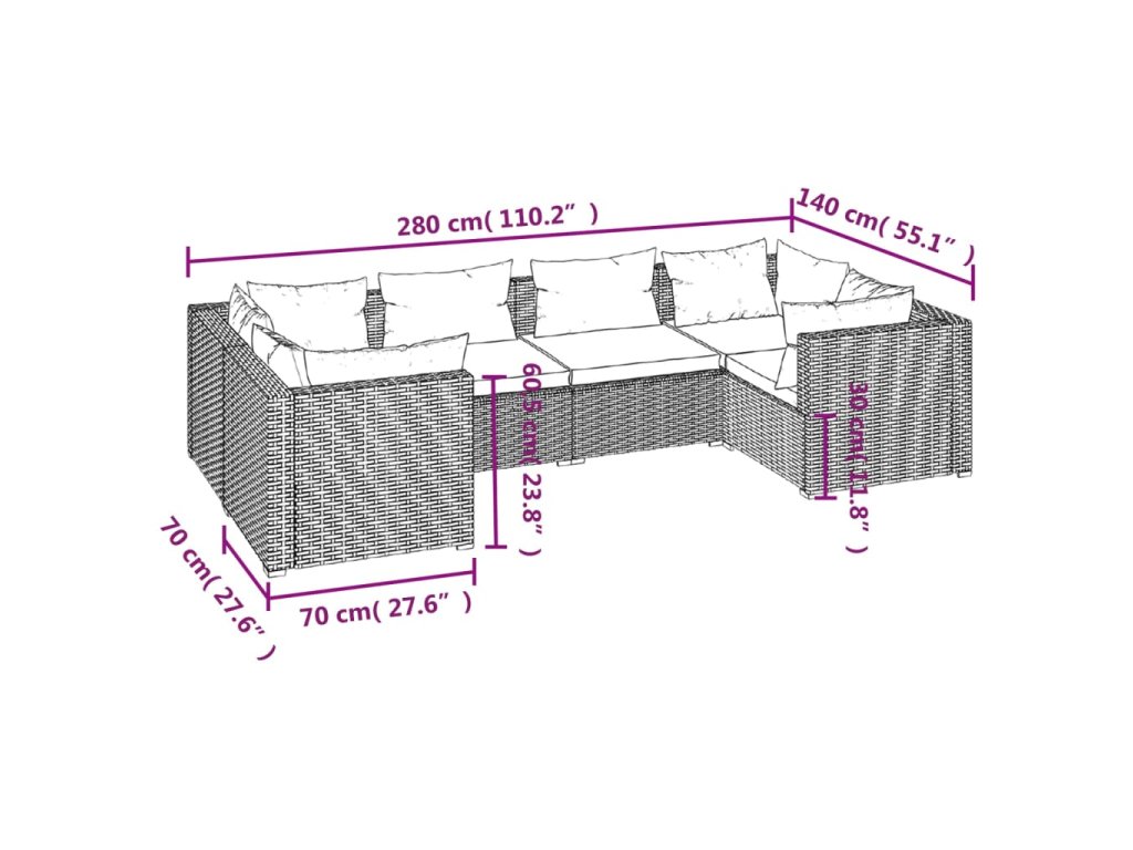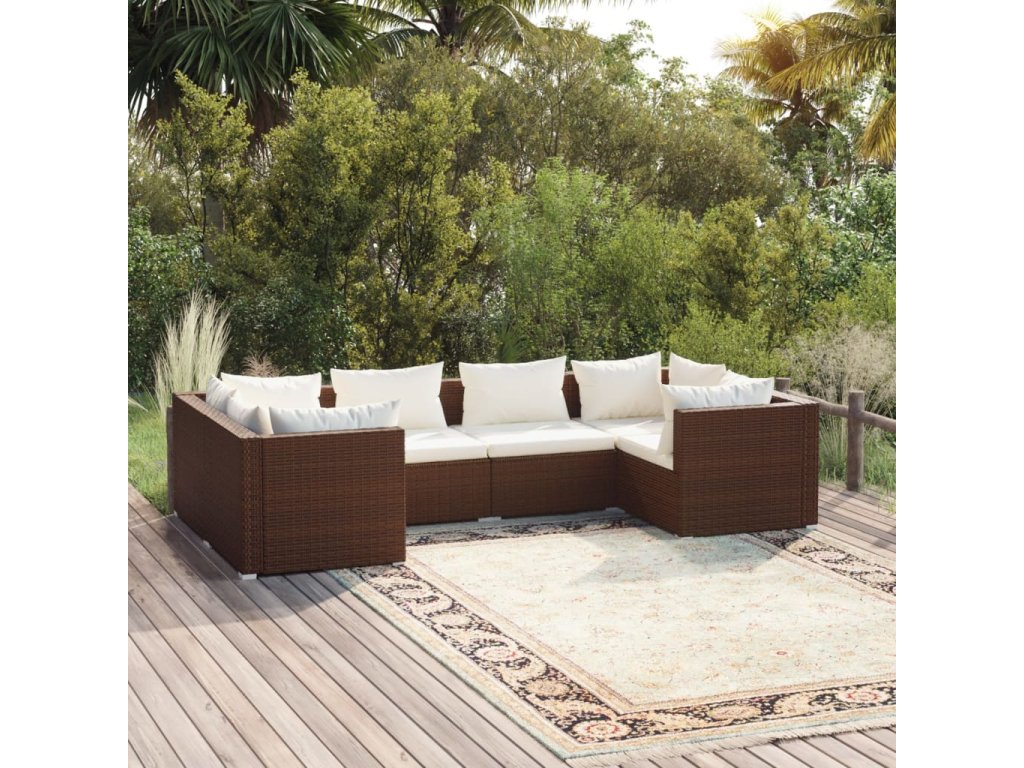 6dílná zahradní sedací souprava s poduškami polyratan hnědá