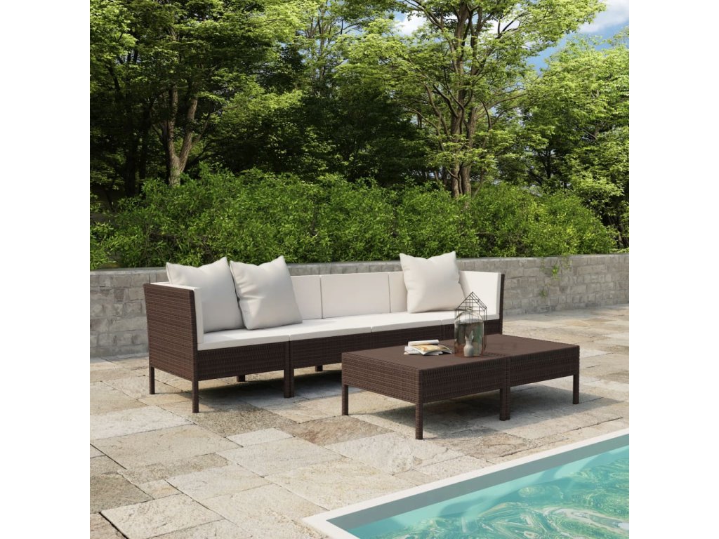 Souprava se skládá z 6 dílů, které můžete vzájemně přemisťovat a kombinovat podle vašich představ. Nábytek je vyrobený z odolného polyratanu, ručně vyplétaného na práškově lakovaný ocelový rám. Souprava je pevná, robustní a klimaticky odolná. PE ratan vzdoruje všem rozmarům počasí, snadno se čistí, je odolný vůči opotřebení a vhodný pro každodenní použití. Hustě polstrované podušky a extra hluboké moderní sedáky vás budou lákat k příjemné relaxaci. Konferenční stolek je ideální k odkládání jídla a nápojů na dosah ruky. Odlehčená a modulární konstrukce usnadňuje přemísťování a přestavování této soupravy zahradního nábytku.