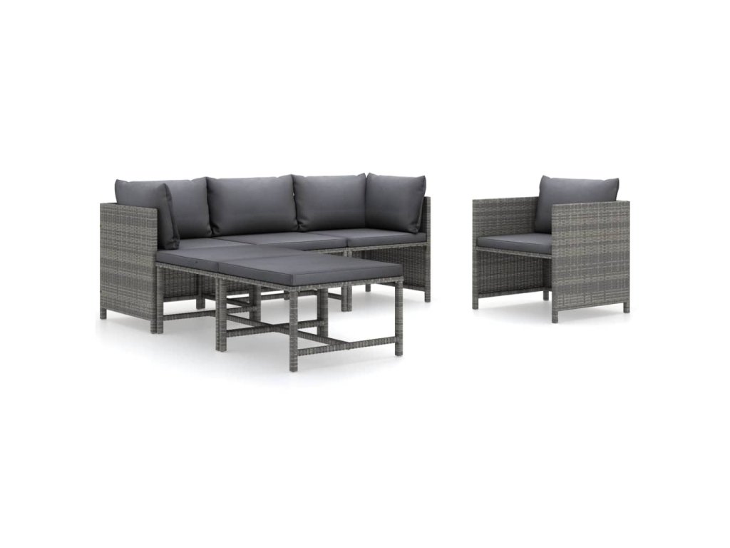 6dílná zahradní sedací souprava s poduškami polyratan šedá