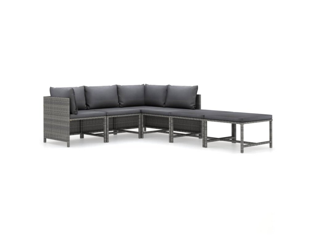 6dílná zahradní sedací souprava s poduškami polyratan šedá