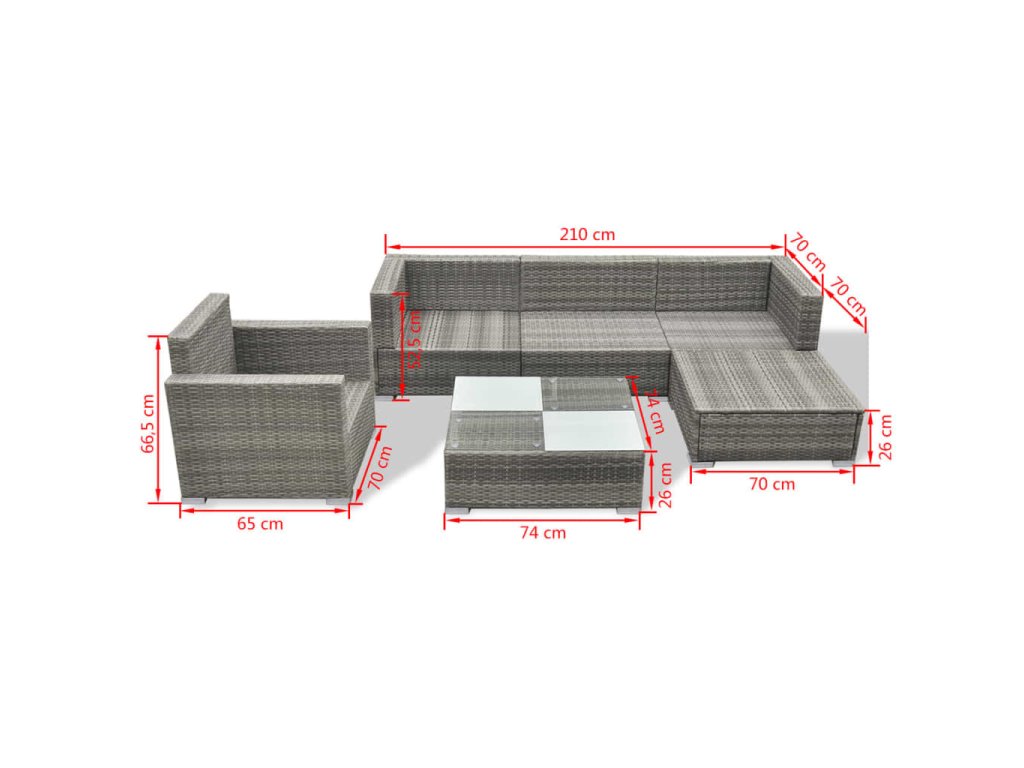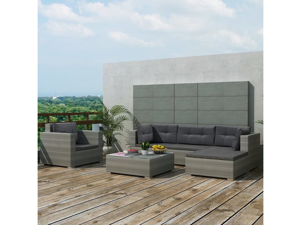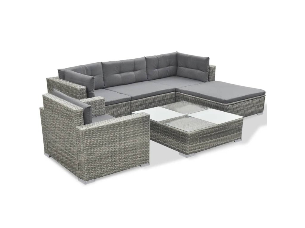 6dílná zahradní sedací souprava s poduškami polyratan šedá