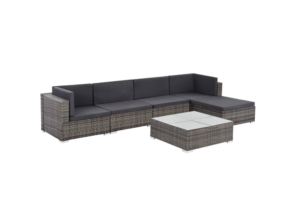 6dílná zahradní sedací souprava s poduškami polyratan šedá