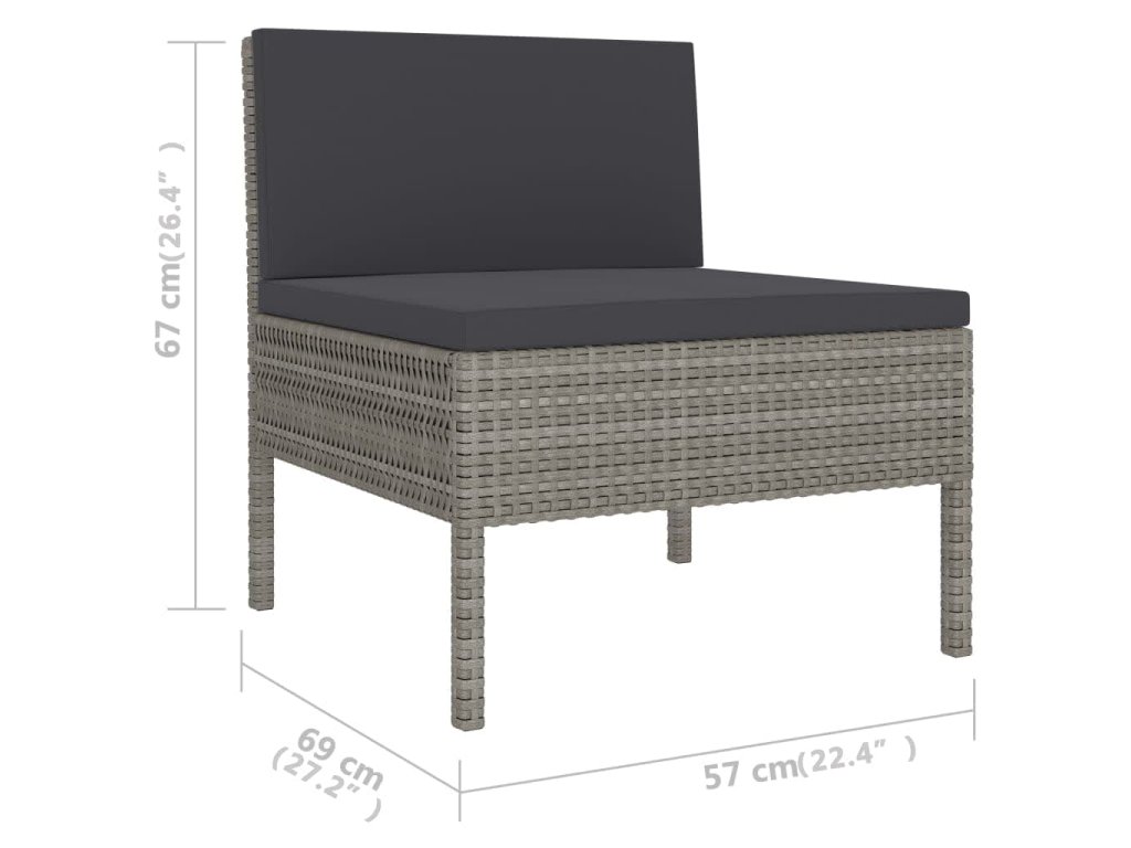 6dílná zahradní sedací souprava s poduškami polyratan šedá