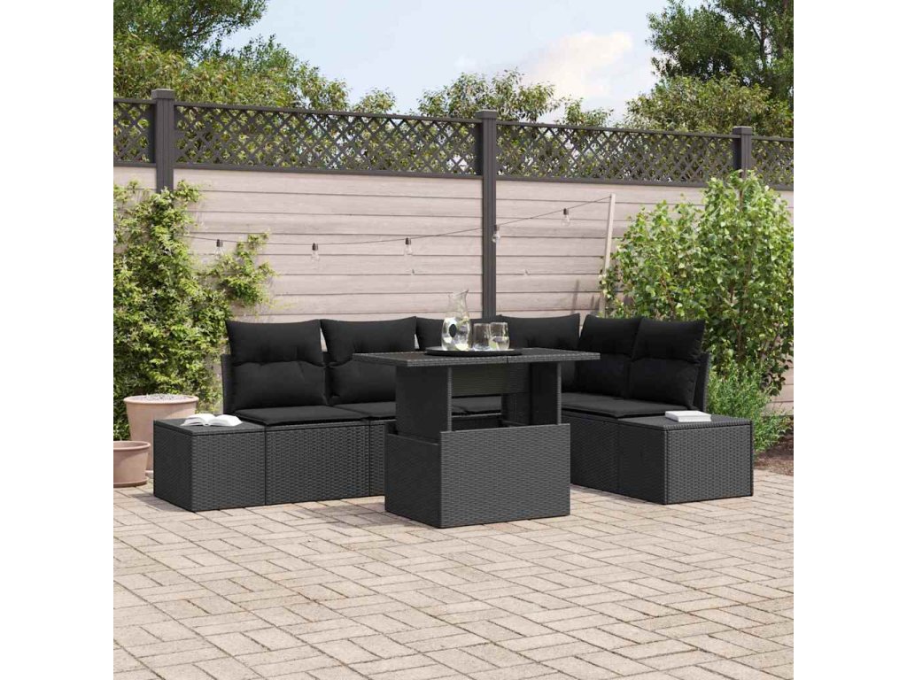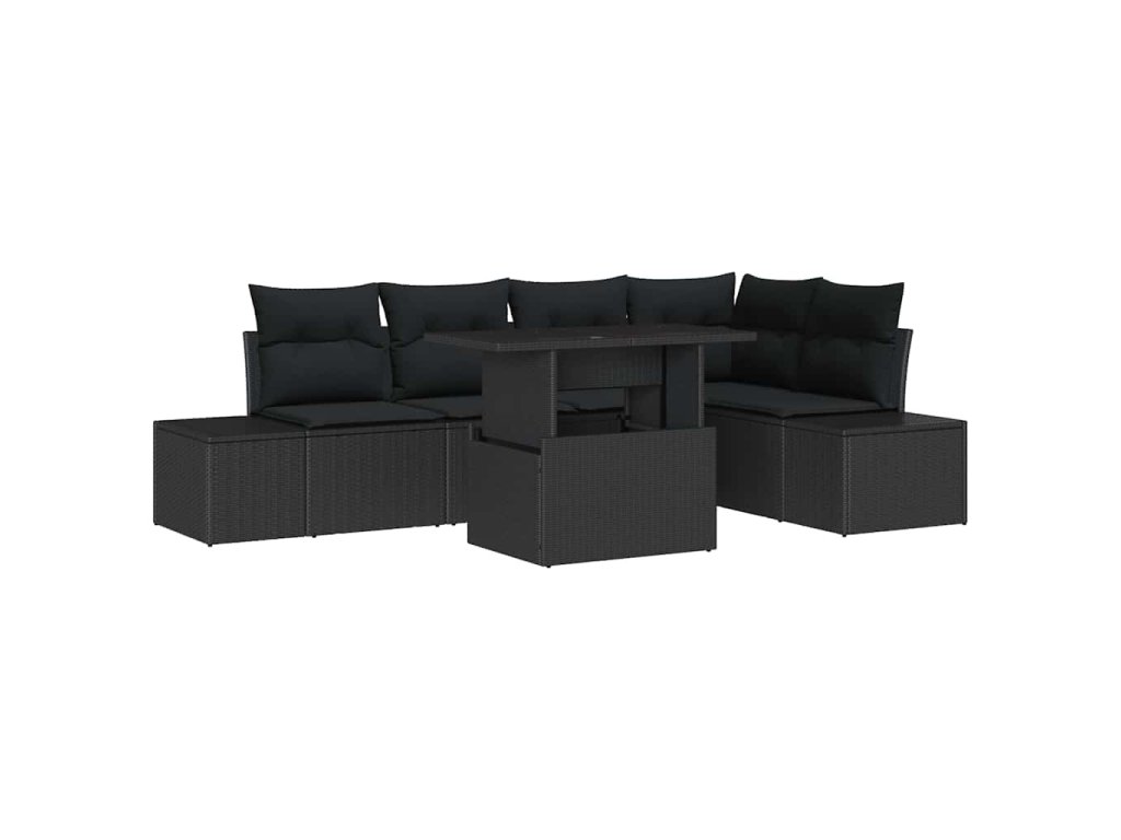 Sada zahradních pohovek s úložištěm 6 pcs Černá Poly ratan