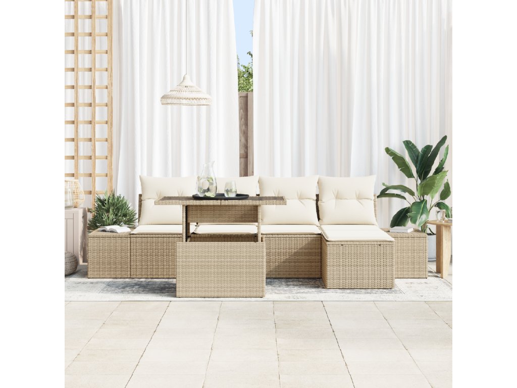 Sada zahradních pohovek 6 pcs Béžová a krémová polyratan