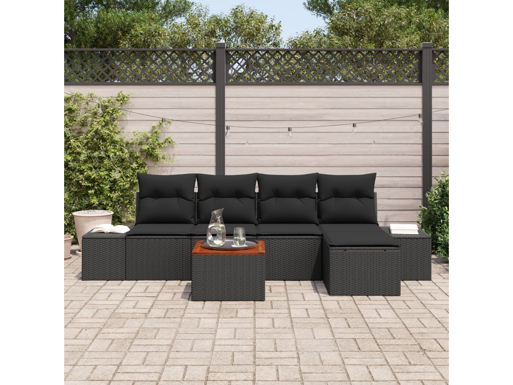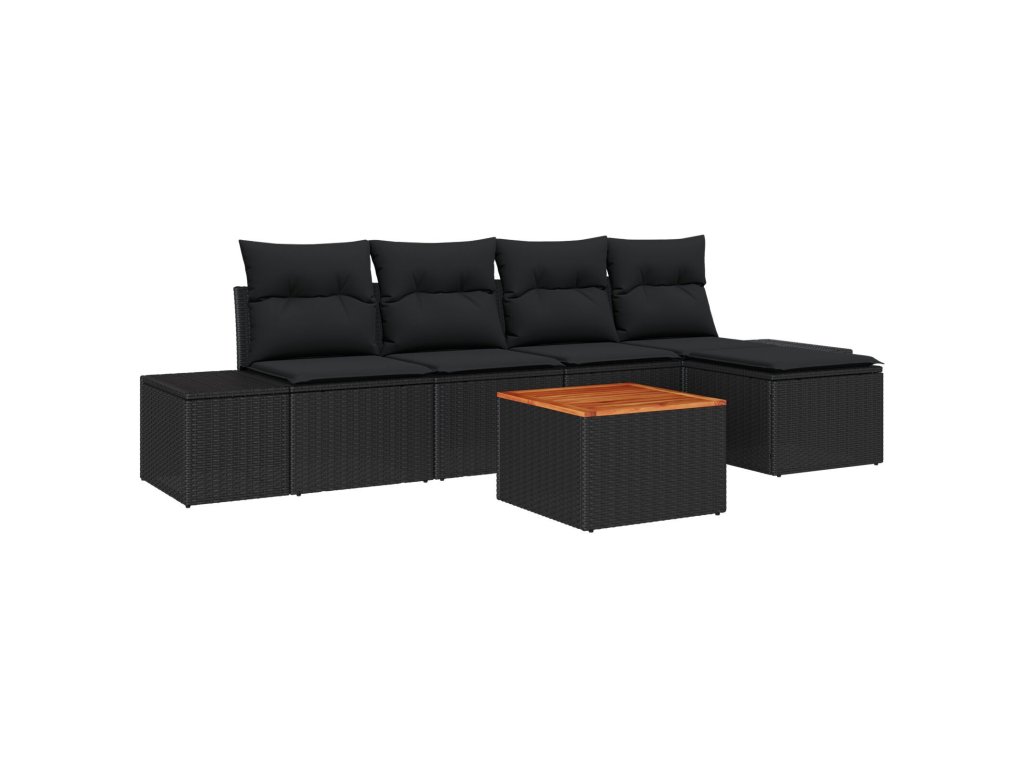 Sada zahradních pohovek s polštářem 6 pcs Černá Poly ratan